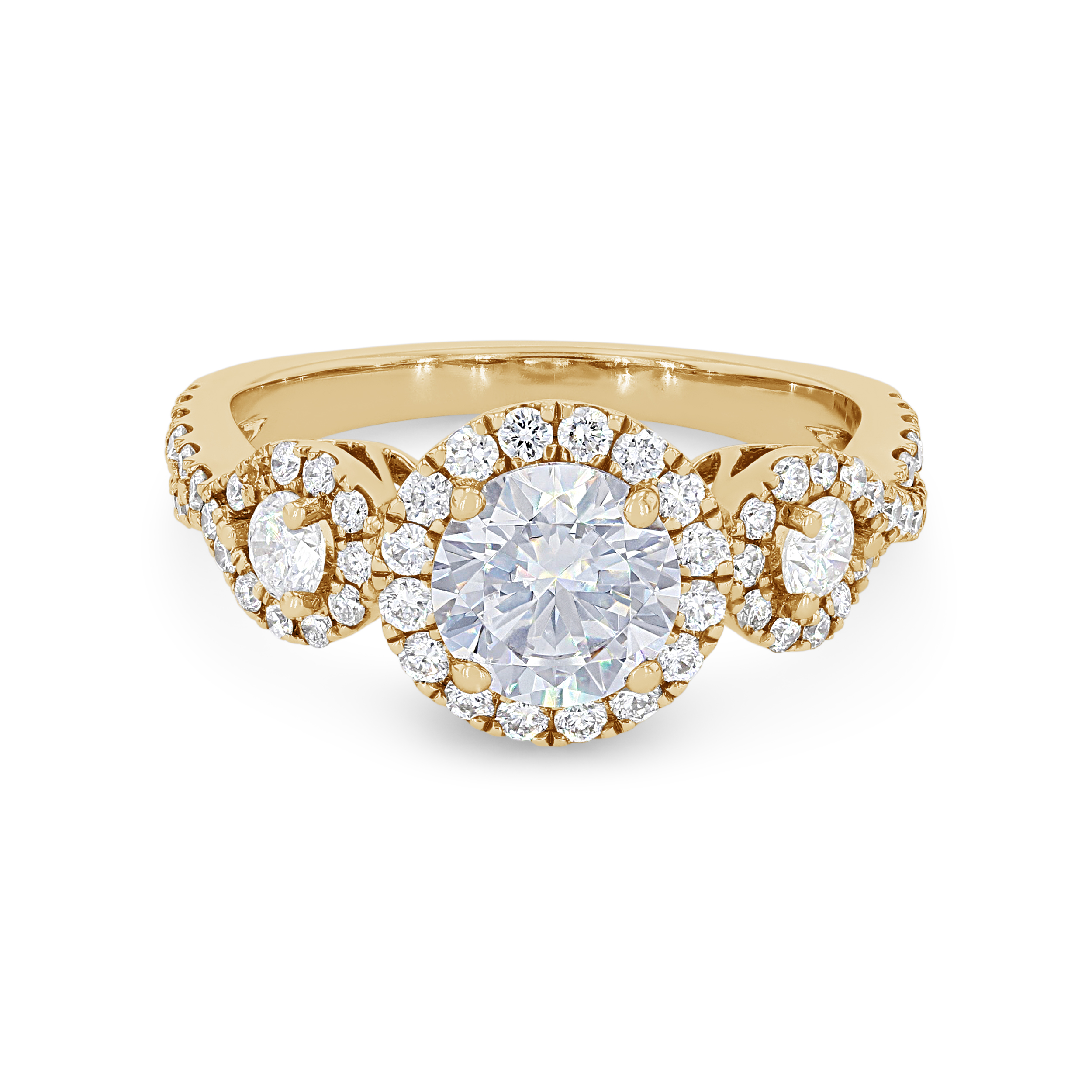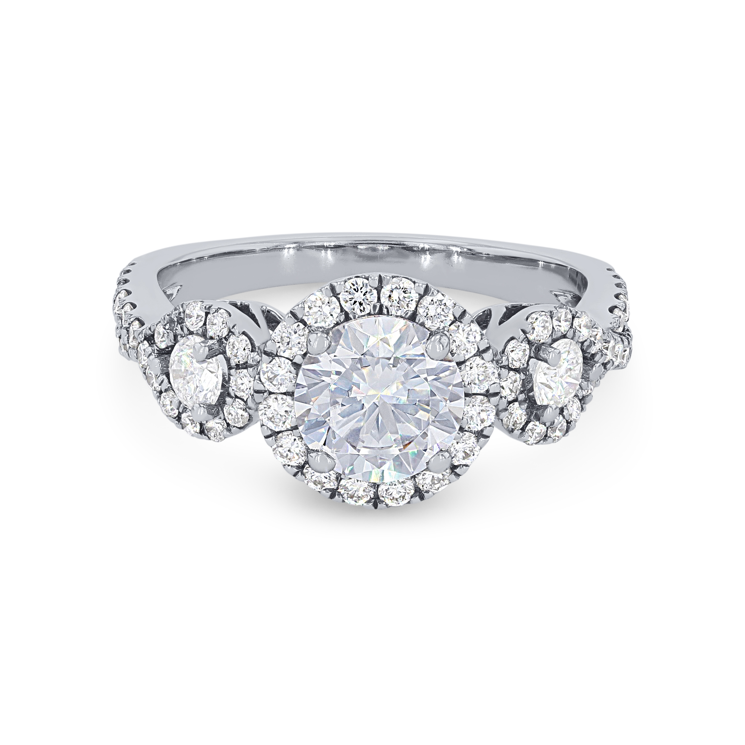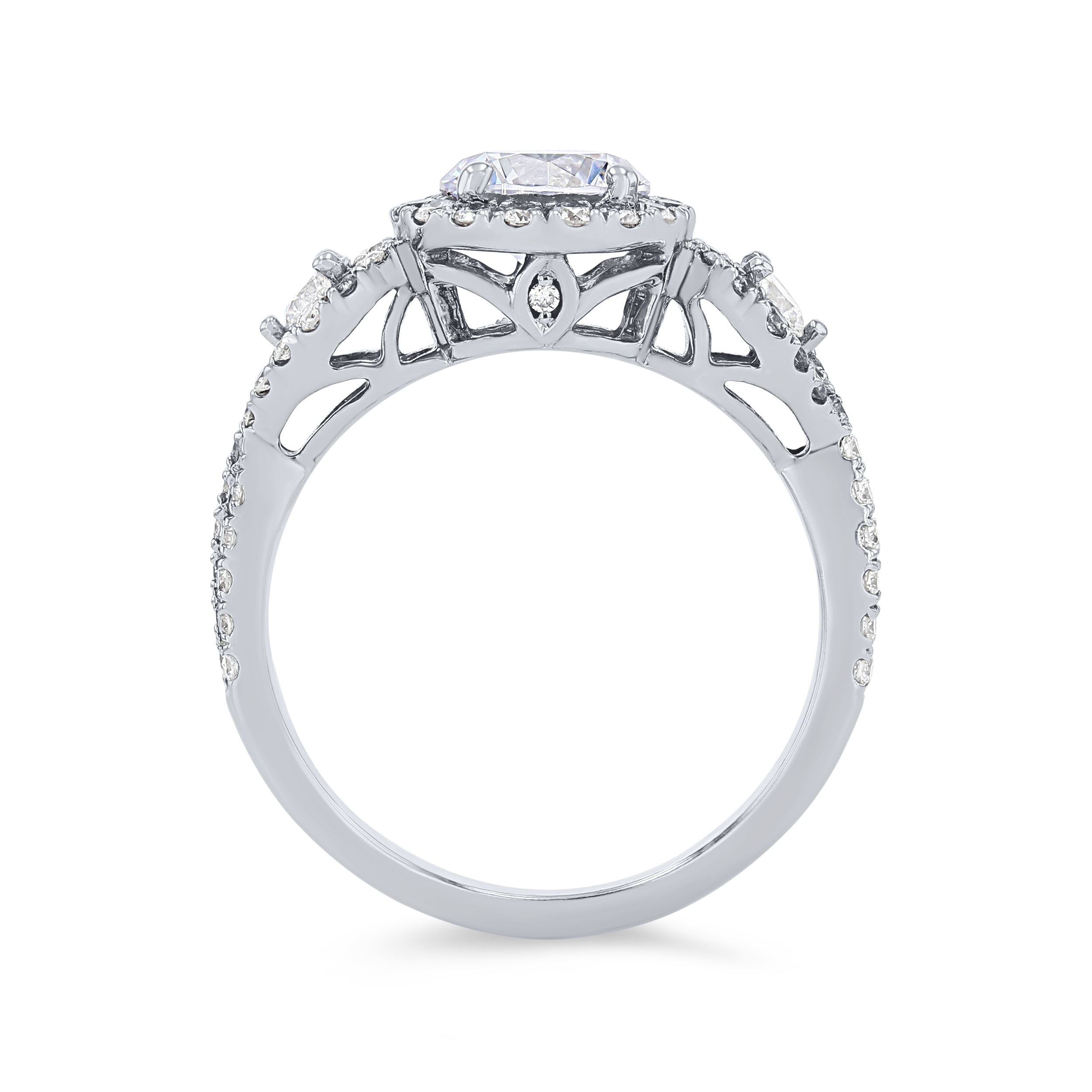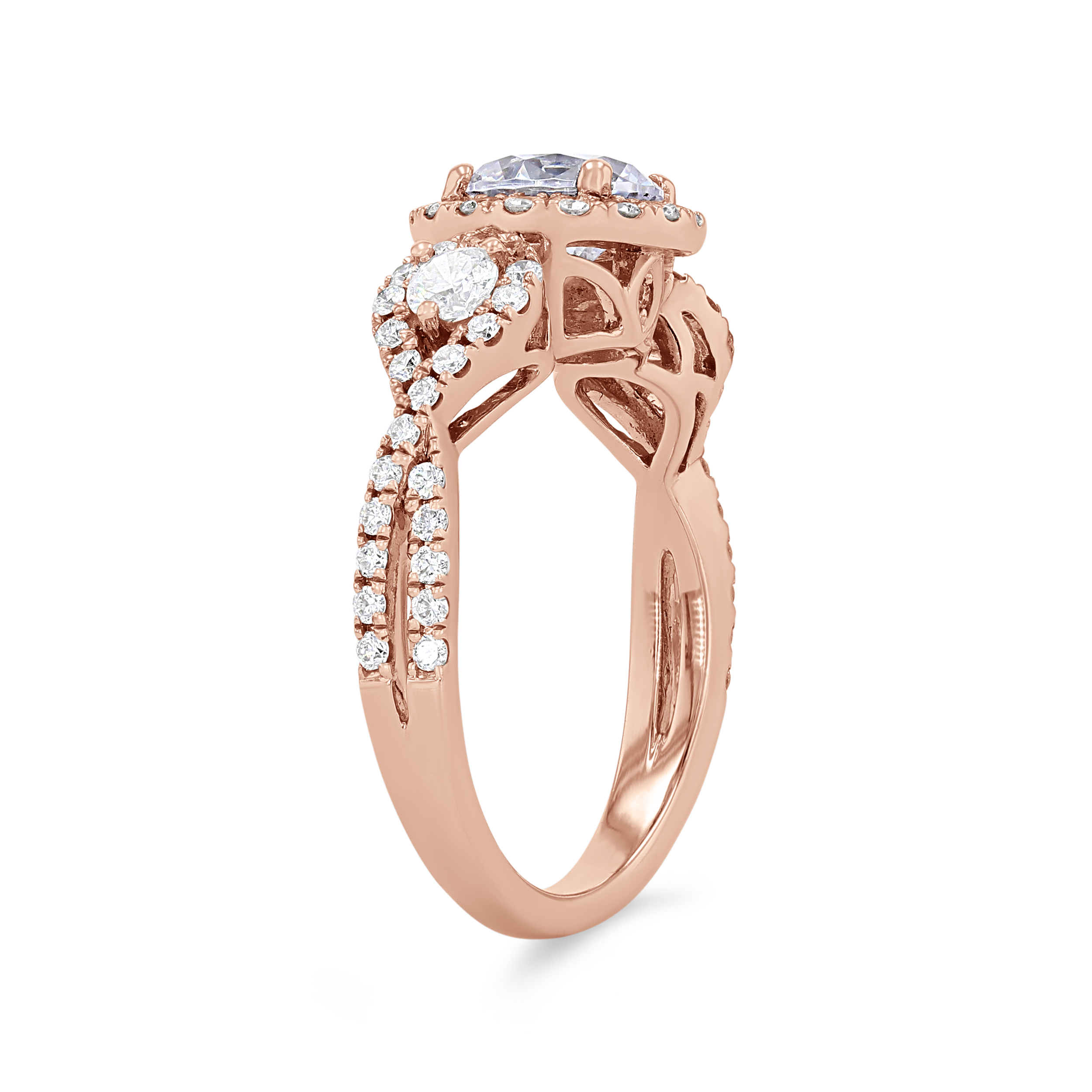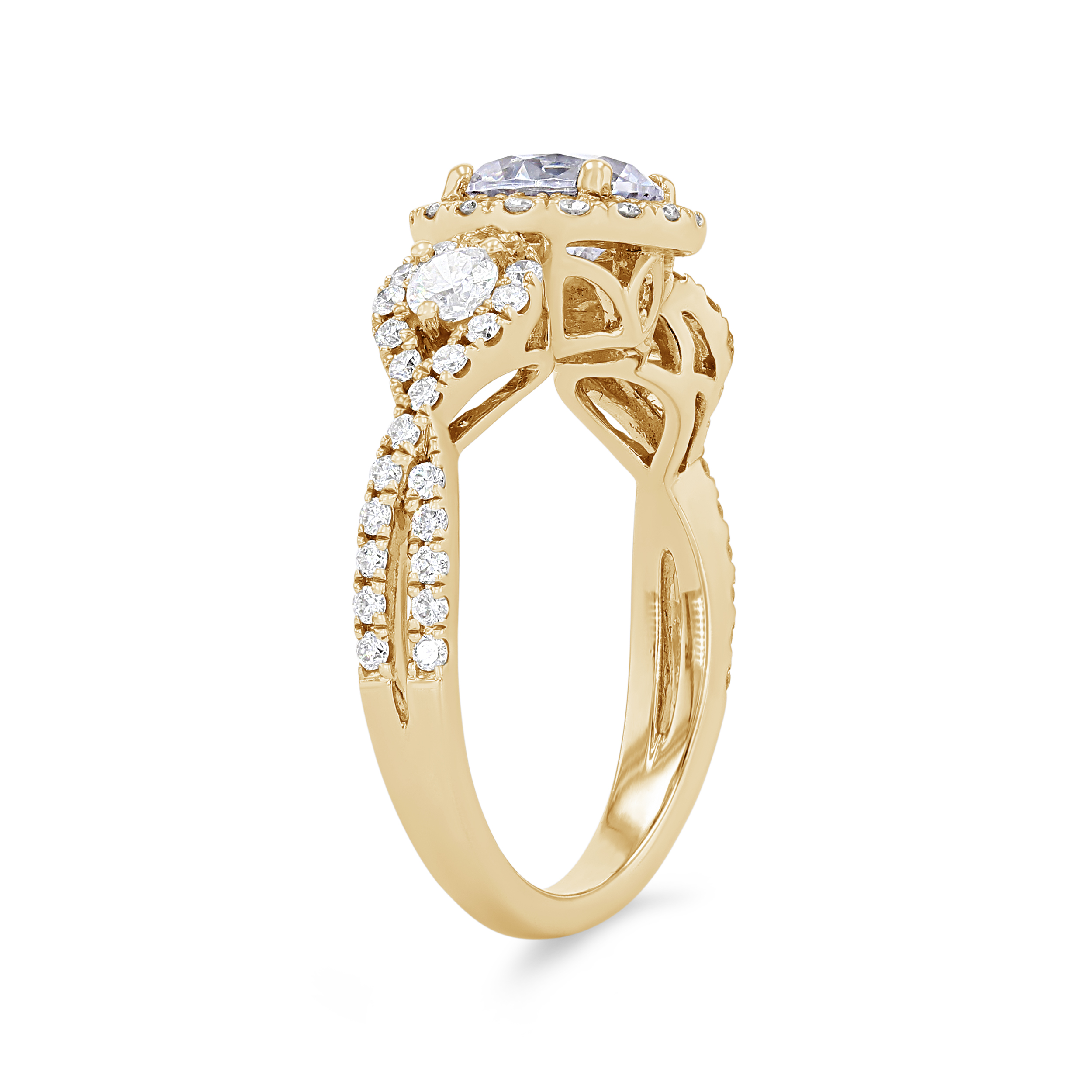 Product Description It's all in the details of this contemporary setting including a three-stone halo design with a twisted shank featuring 0.75 carats of round brilliant cut diamonds. Other Details Metal Color: White Gold Gemstone Type: Diamond Style: Contemporary Mounting Type: Halo Type: Setting Metal Color: Rose Gold Metal Color: Platinum Total Setting Diamond Carat Weight: 0.75TW Metal Color: Yellow Gold Disable Reason: None