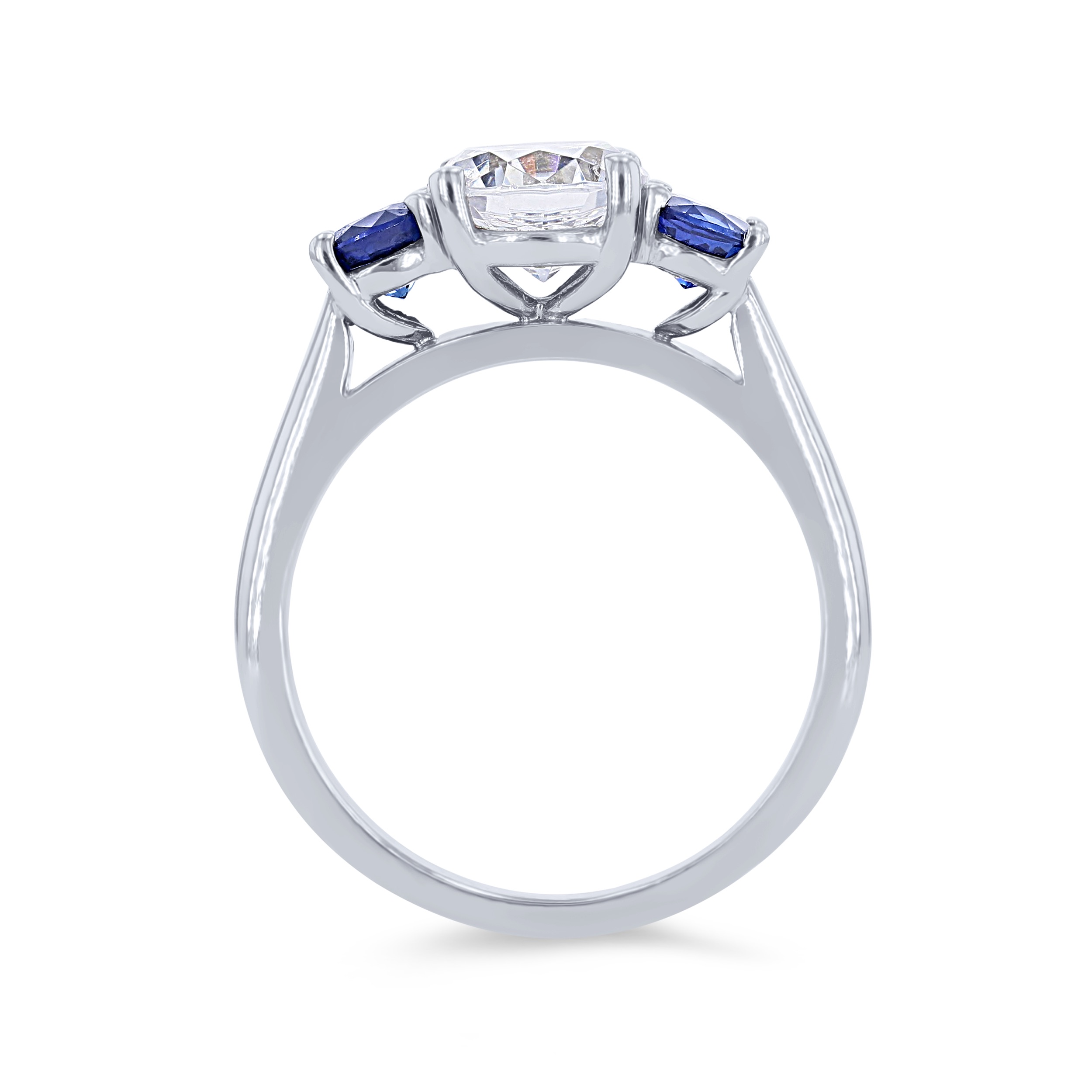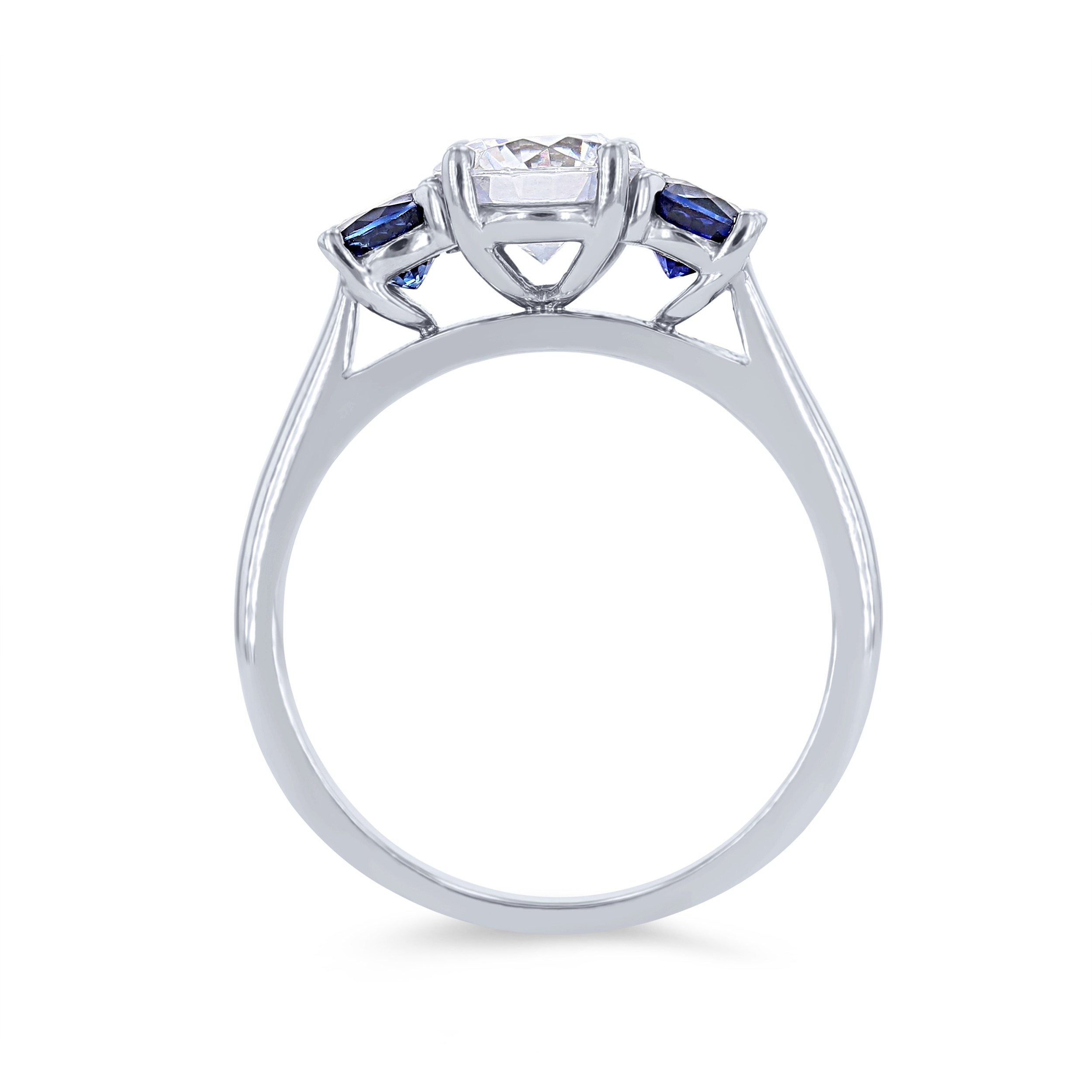 Product Description A colorful three stone engagement setting featuring round blue sapphires. Other Details Metal Color: Yellow Gold Type: Setting Disable Reason: None Style: Classic Metal Color: Platinum Mounting Type: Three Stone Women Wedding Band Type: Gemstone Gemstone Type: Sapphire Metal Color: White Gold