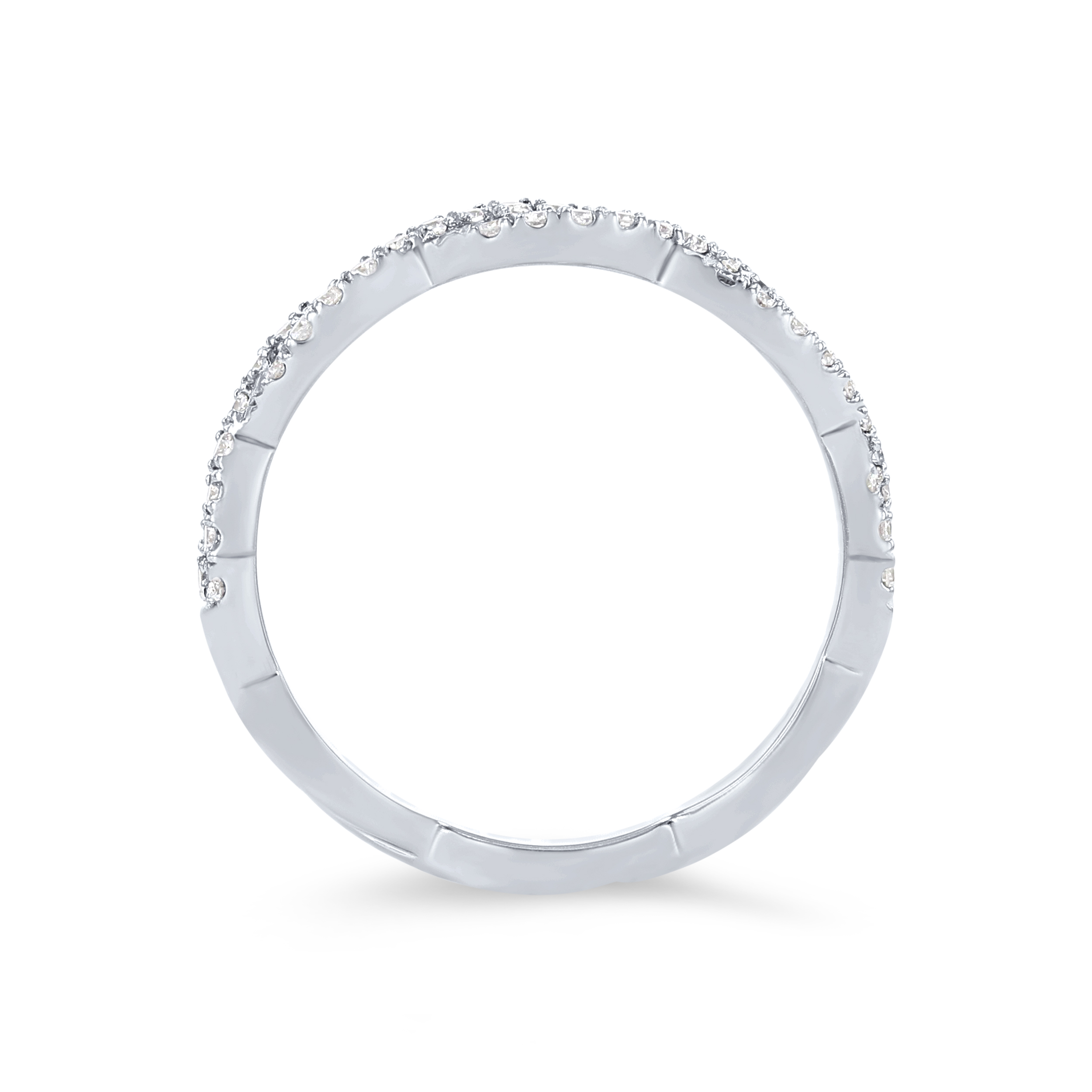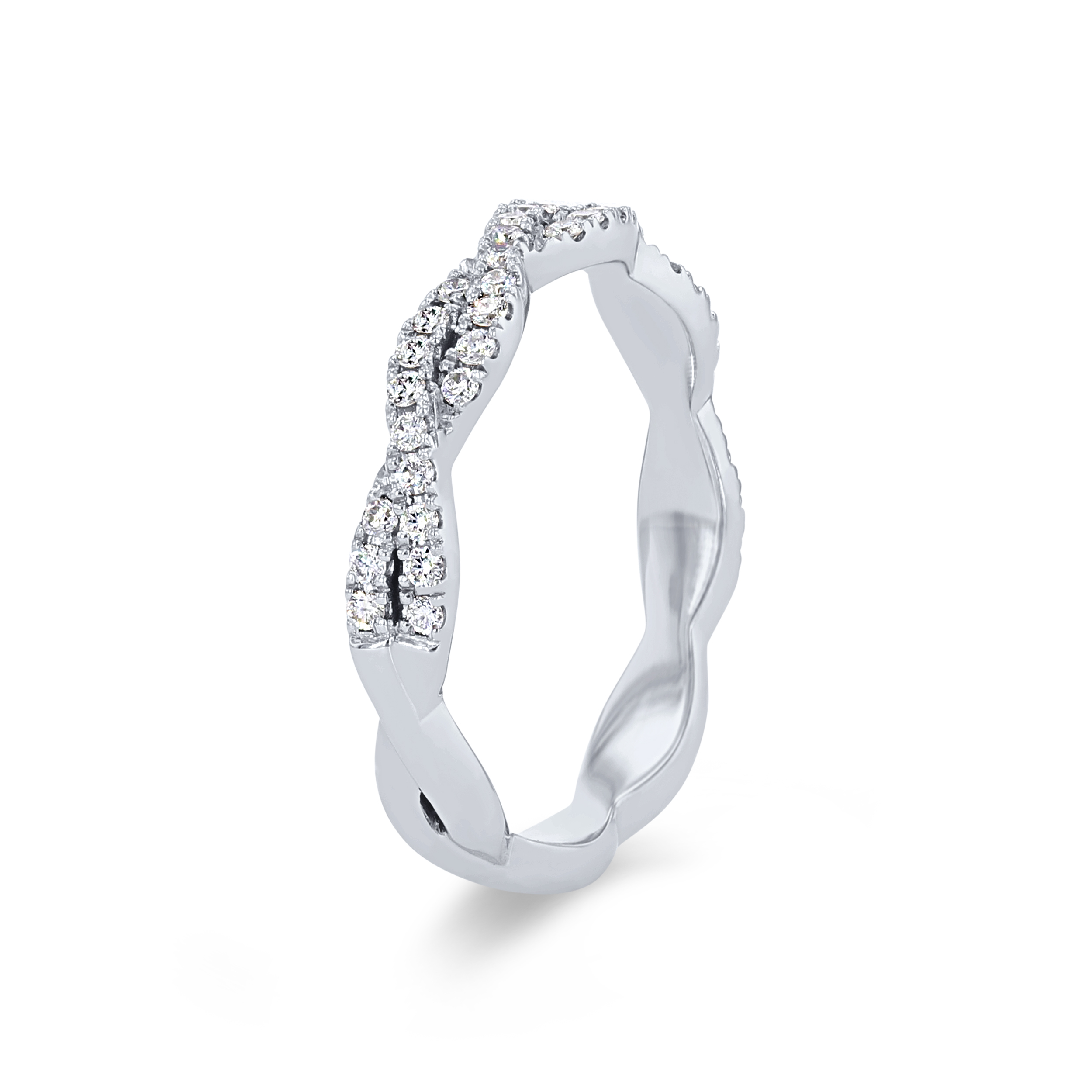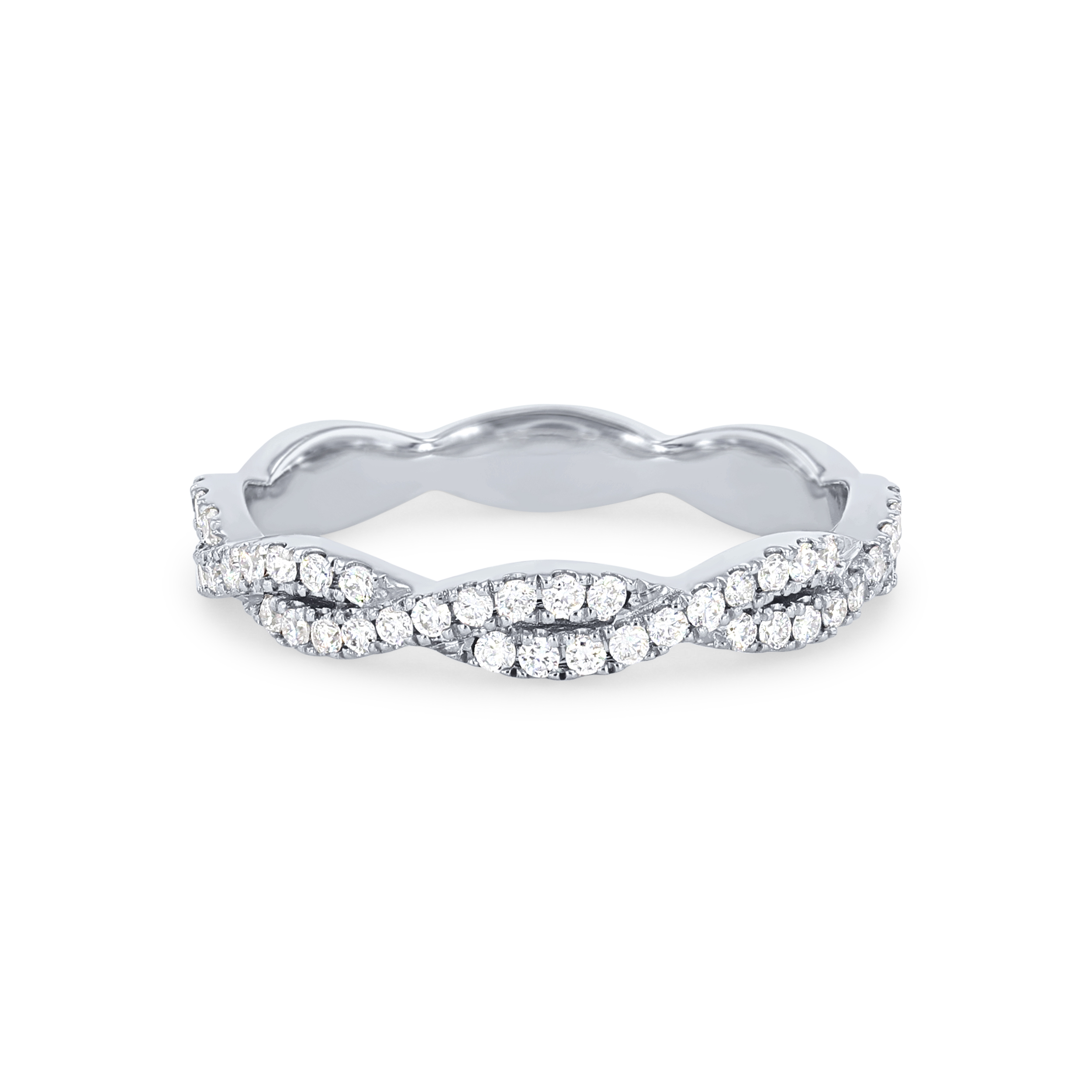 Product Description This contemporary twist wedding band features 0.35 carats of round brilliant cut diamonds. Pair with a twist engagement ring for a cohesive look or next to straight bands for some variety. Other Details Metal Color: Yellow Gold Metal Color: Rose Gold Metal Color: White Gold Total Setting Diamond Carat Weight: 0.35TW Disable Reason: None Gemstone Type: Diamond Diamond: Stackable Type: Ladies Wedding Band Metal Color: Platinum Style: Contemporary Wedding Band Type: Twist