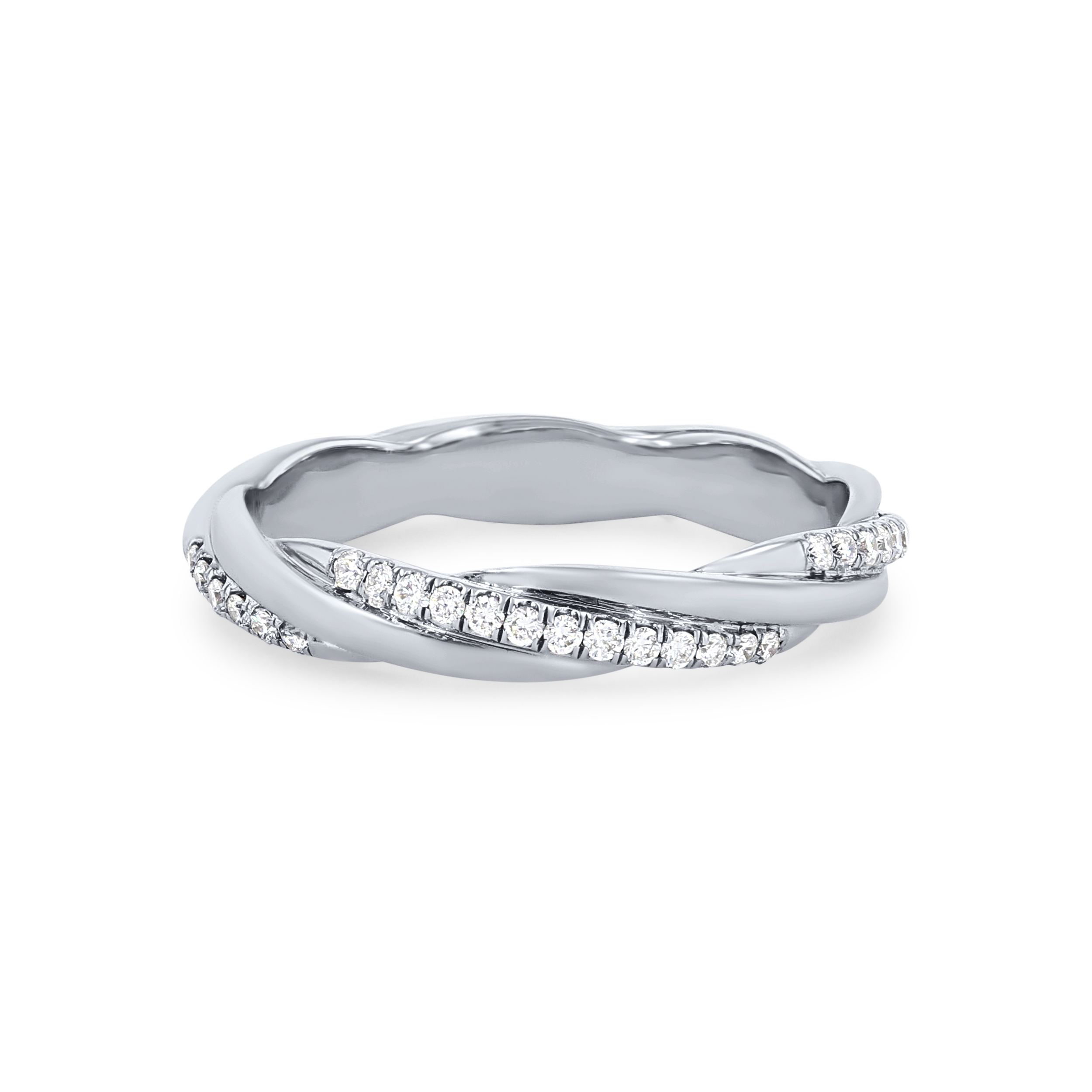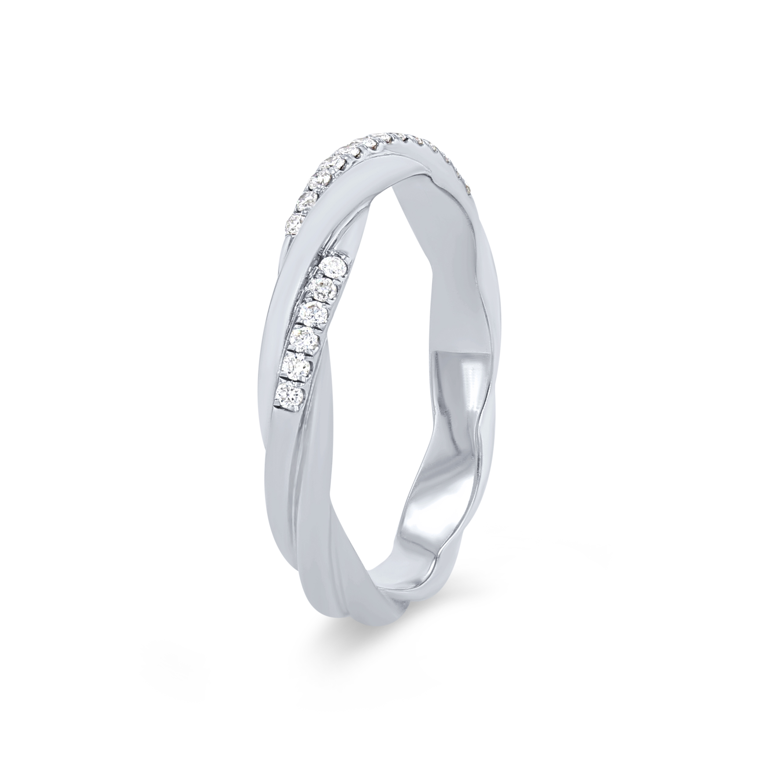 Product Description This stunning twist wedding band creates beautiful contrast with half accented by 0.12 carats of round brilliant cut diamonds and the other high polished. Other Details Metal Color: Yellow Gold Gemstone Type: Diamond Type: Ladies Wedding Band Metal Color: Platinum Wedding Band Type: Twist Style: Contemporary Metal Color: White Gold Diamond: Stackable Metal Color: Rose Gold Disable Reason: None Total Setting Diamond Carat Weight: 0.12TW