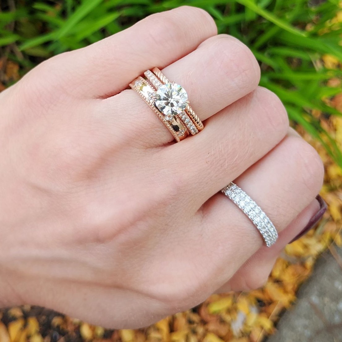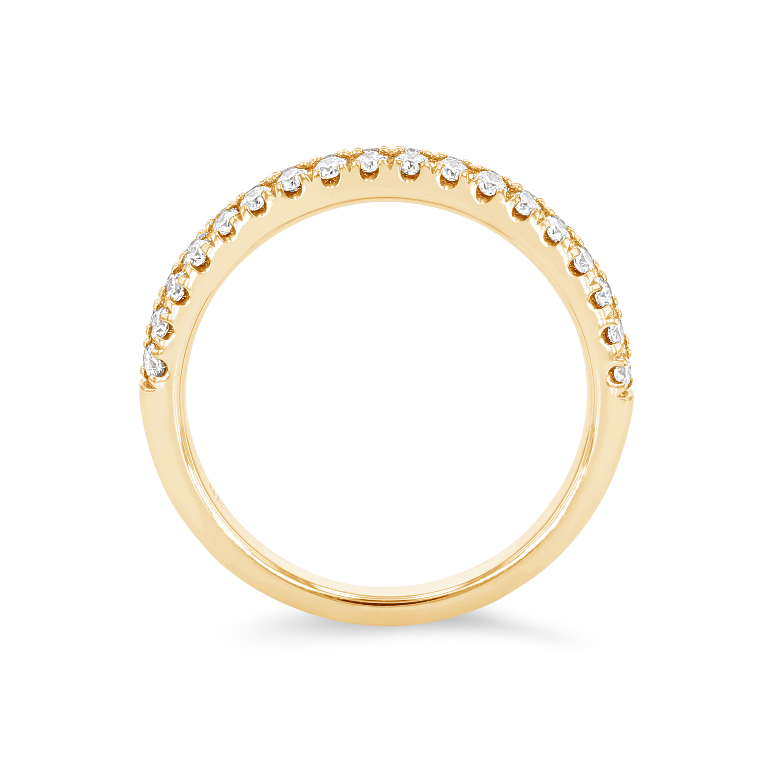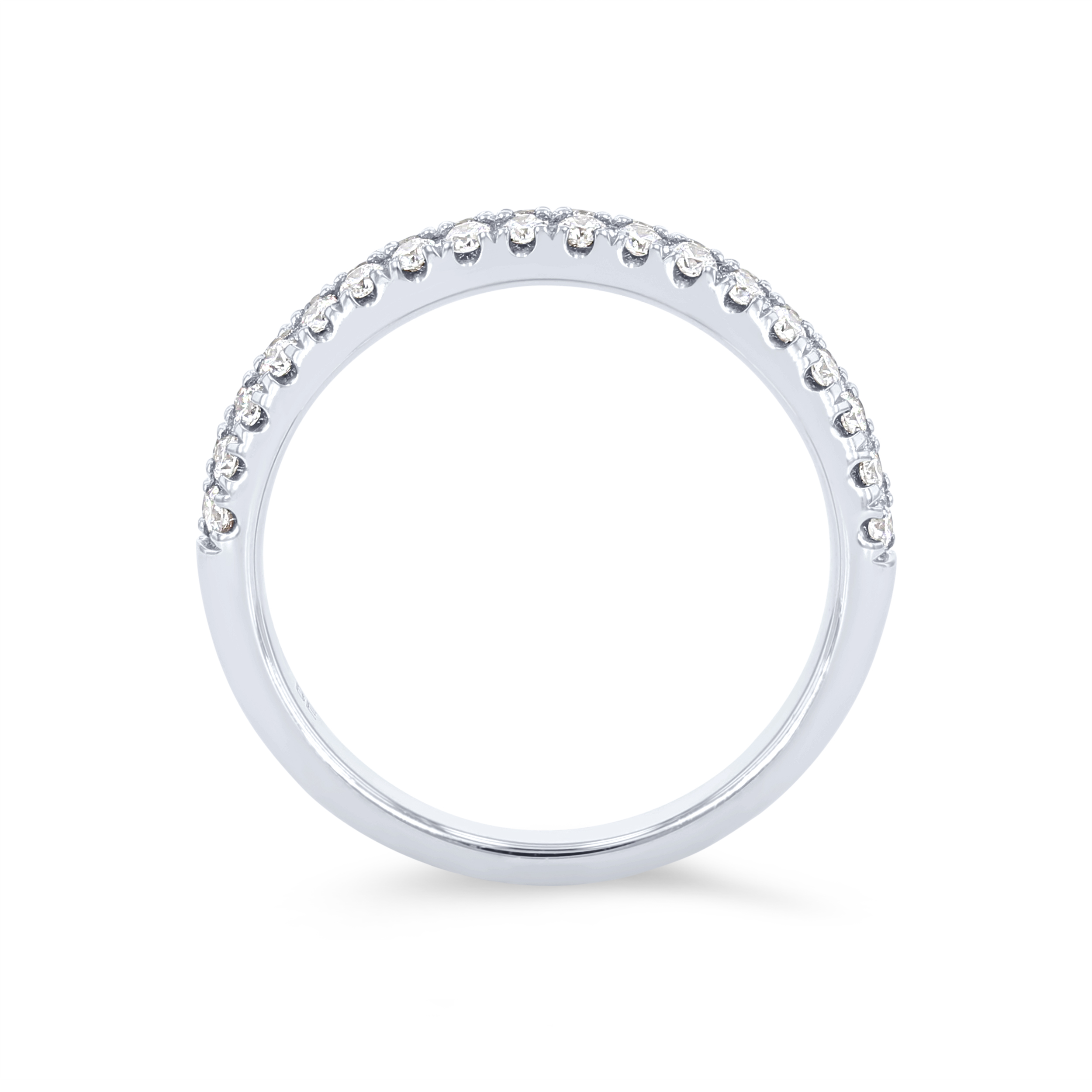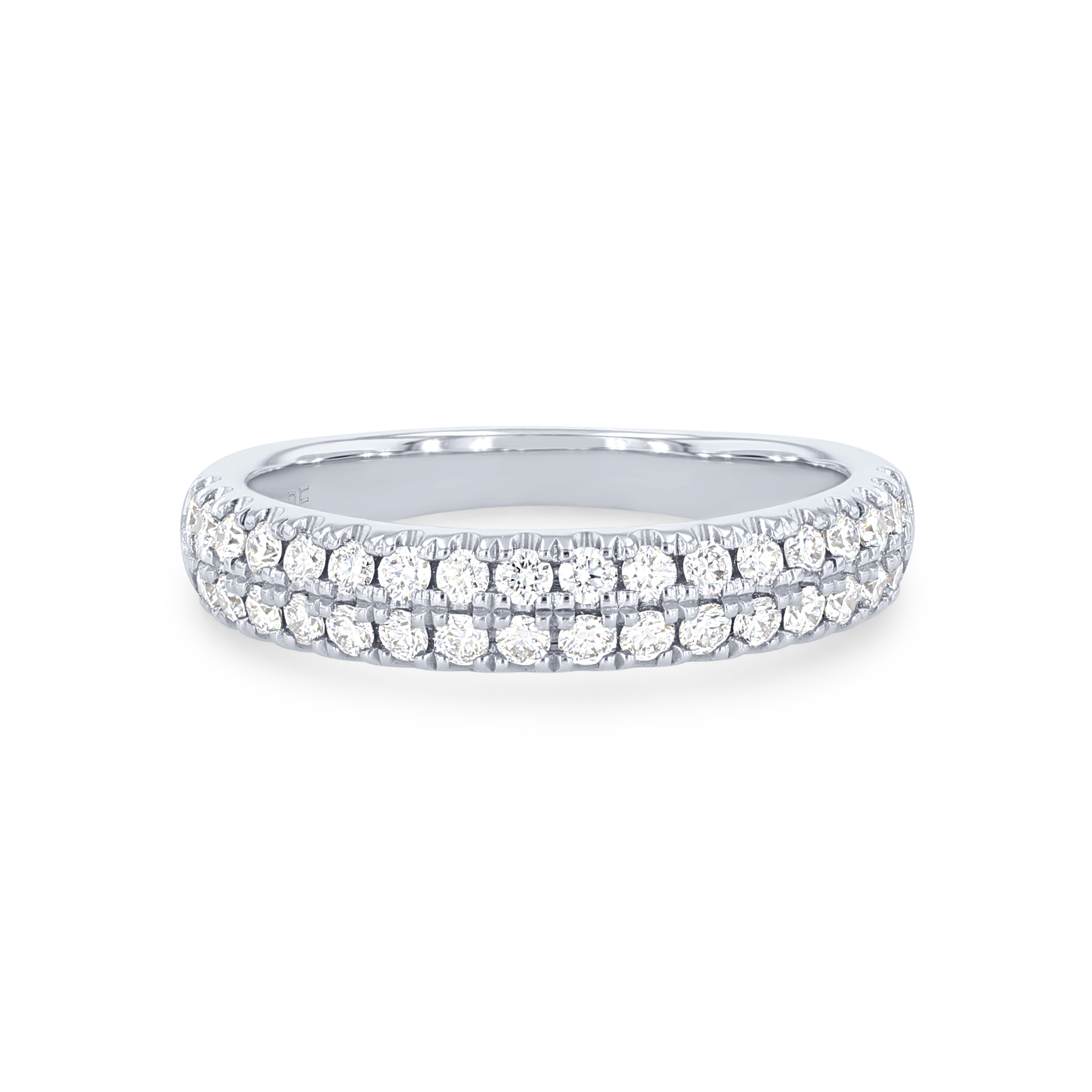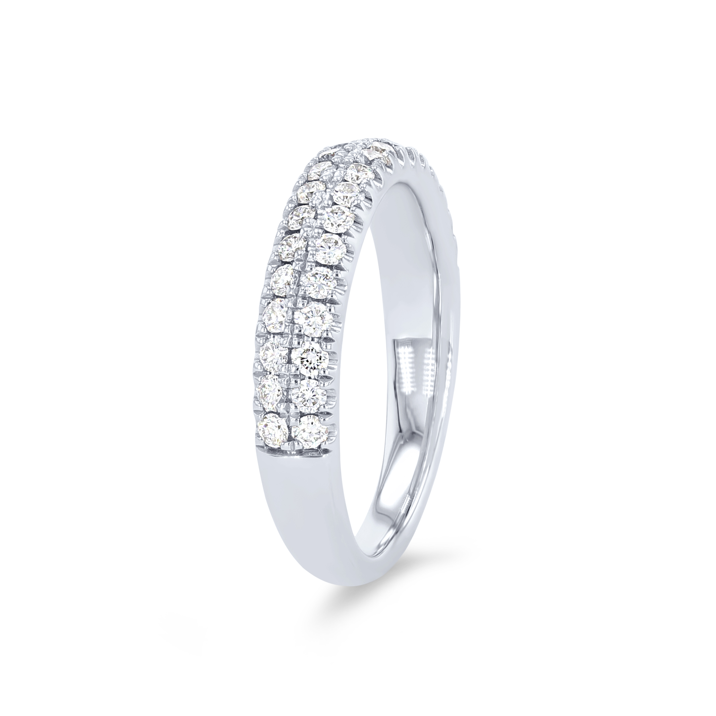 Product Description A classic design that can be worn with an engagement ring or on its own this band features two rows of round brilliant cut diamonds totaling 0.50 carats. Other Details Metal Color: Platinum Total Setting Diamond Carat Weight: 0.5TW Metal Color: Rose Gold Disable Reason: None Average clarity range: I1 Type: Ladies Wedding Band Wedding Band Type: Prong Set Metal Color: White Gold Style: Classic Gemstone Type: Diamond Ring Type: Multi-row Metal Color: Yellow Gold Average color range: J