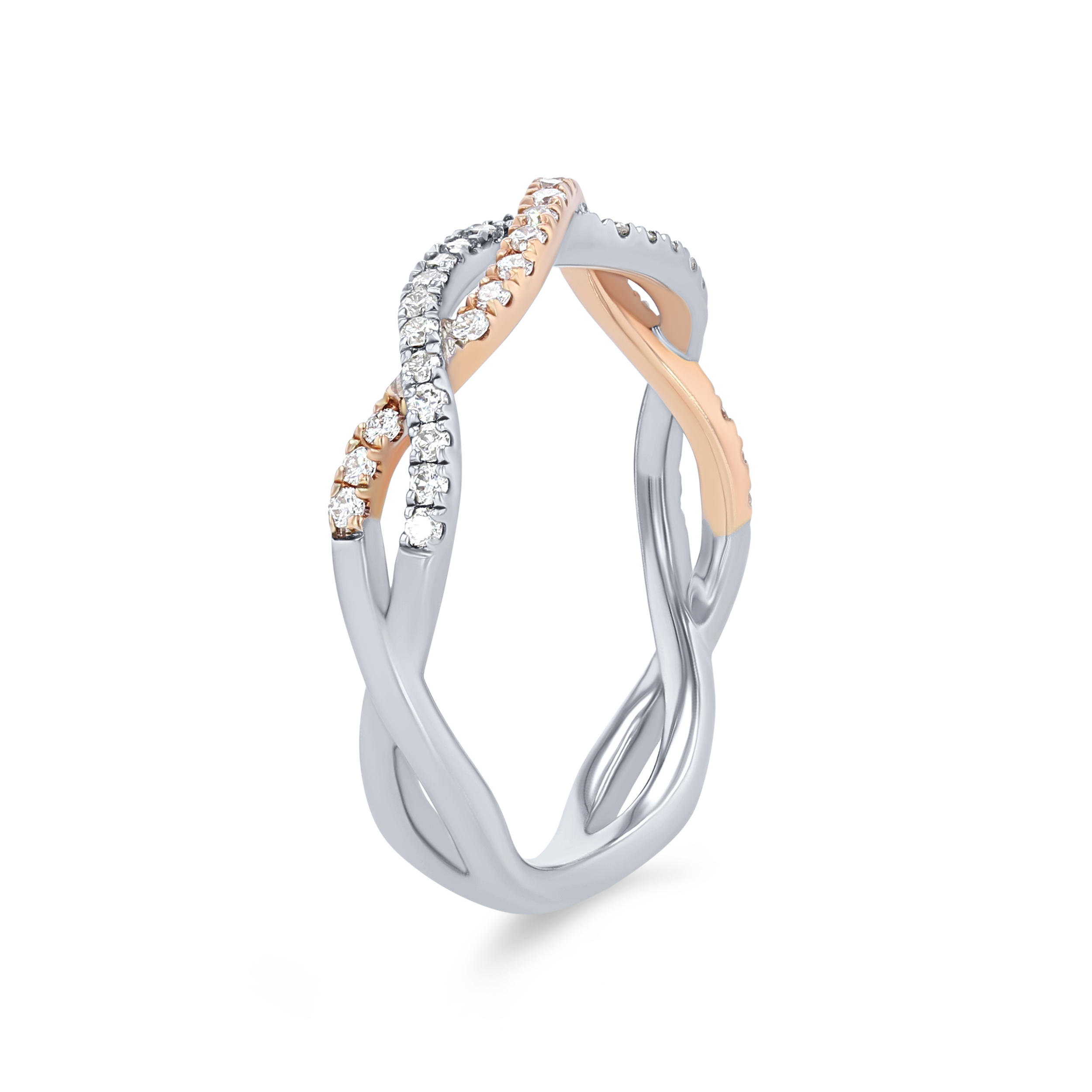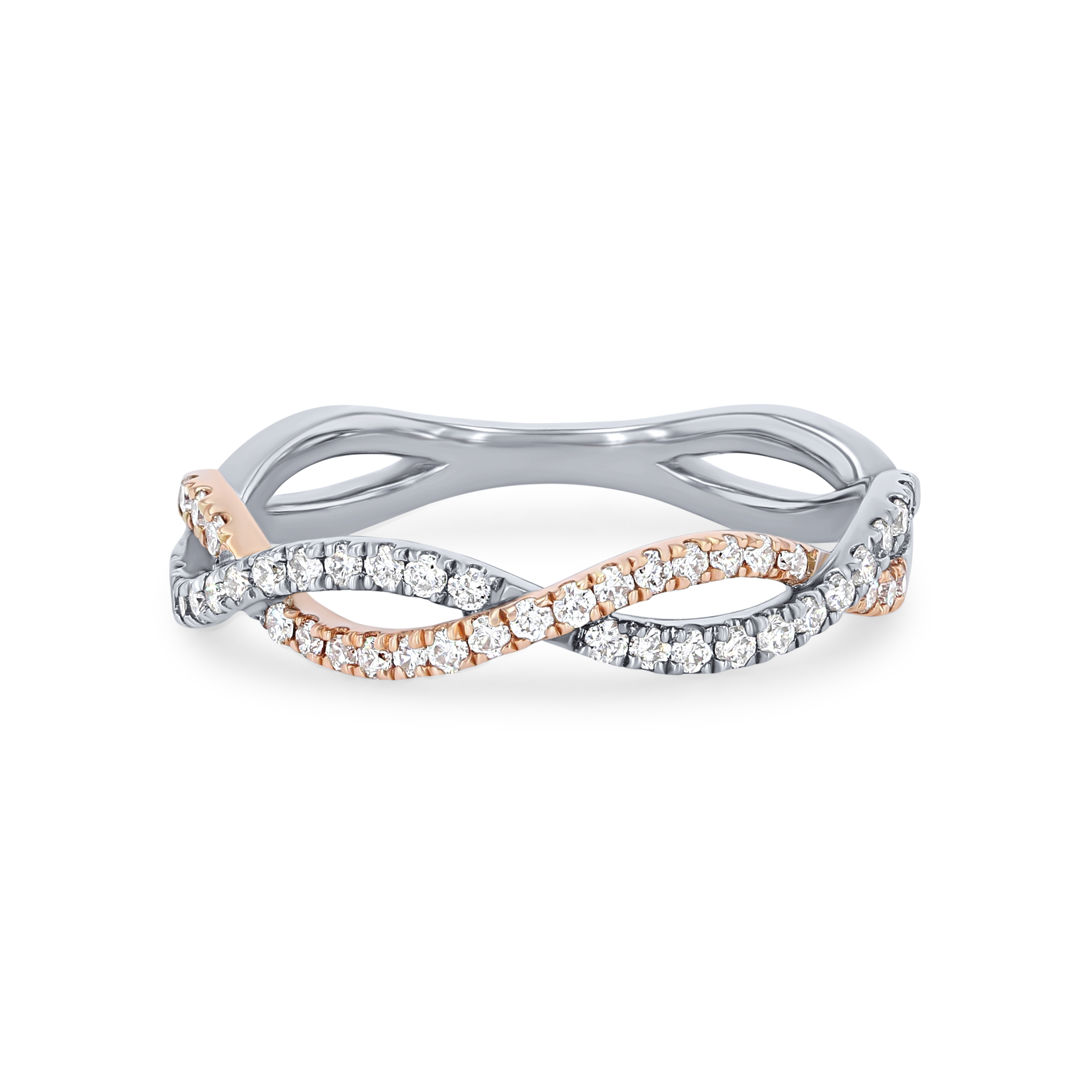 Product Description An intricate twist design highlights the two-tone gold of this classic band, accented by 0.30 carats of round brilliant cut diamonds. Other Details Gemstone Type: Diamond Wedding Band Type: Twist Type: Ladies Wedding Band Total Setting Diamond Carat Weight: 0.3TW Metal Color: Two Tone Disable Reason: None Style: Classic Diamond: Stackable
