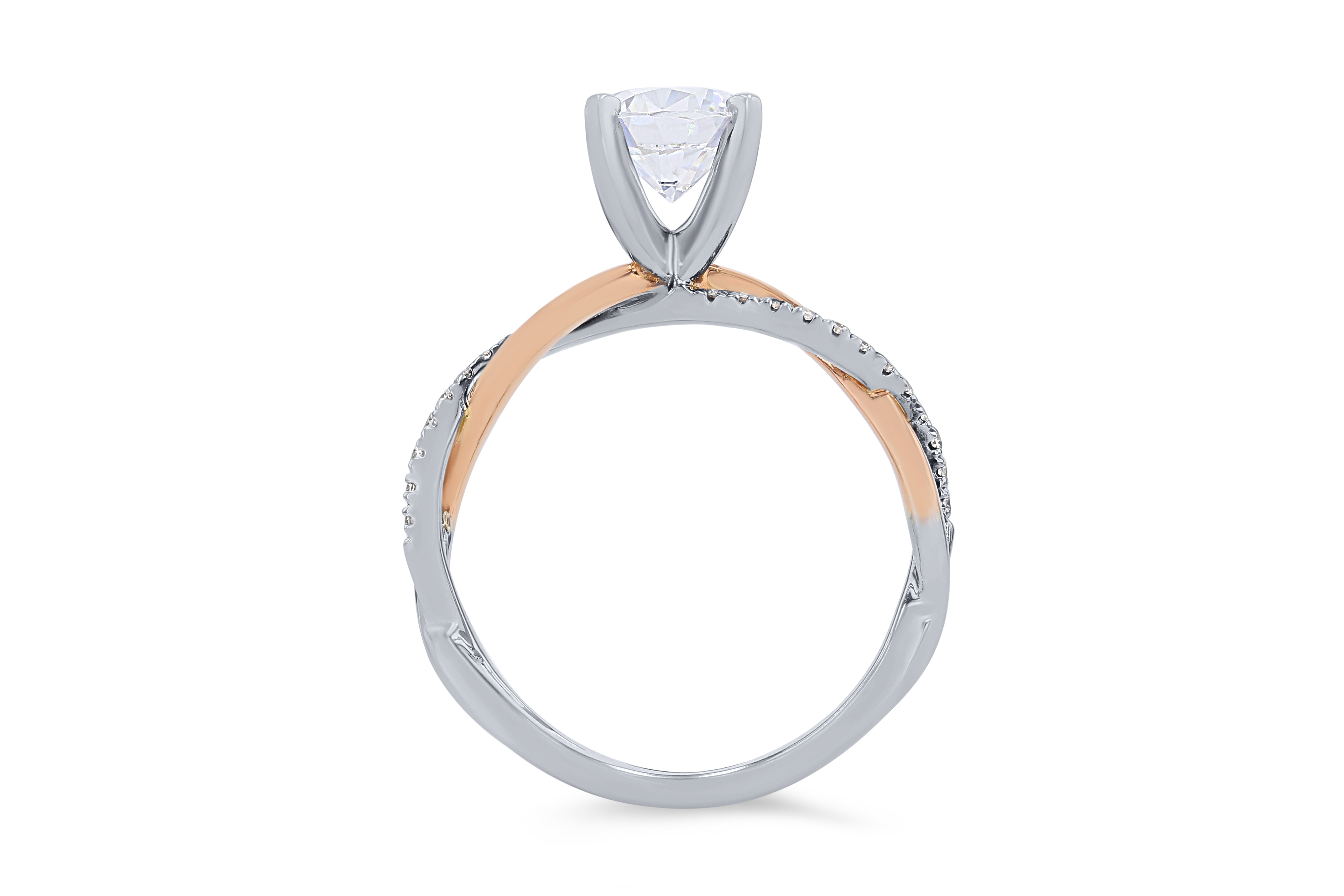 Product Description Two tones of gold crafted in a captivating twist design are accented by 0.16 carats of round brilliant cut diamonds. Other Details Type: Setting Gemstone Type: Diamond Style: Contemporary Total Setting Diamond Carat Weight: 0.16TW Mounting Type: Twist Metal Color: Two Tone Disable Reason: None