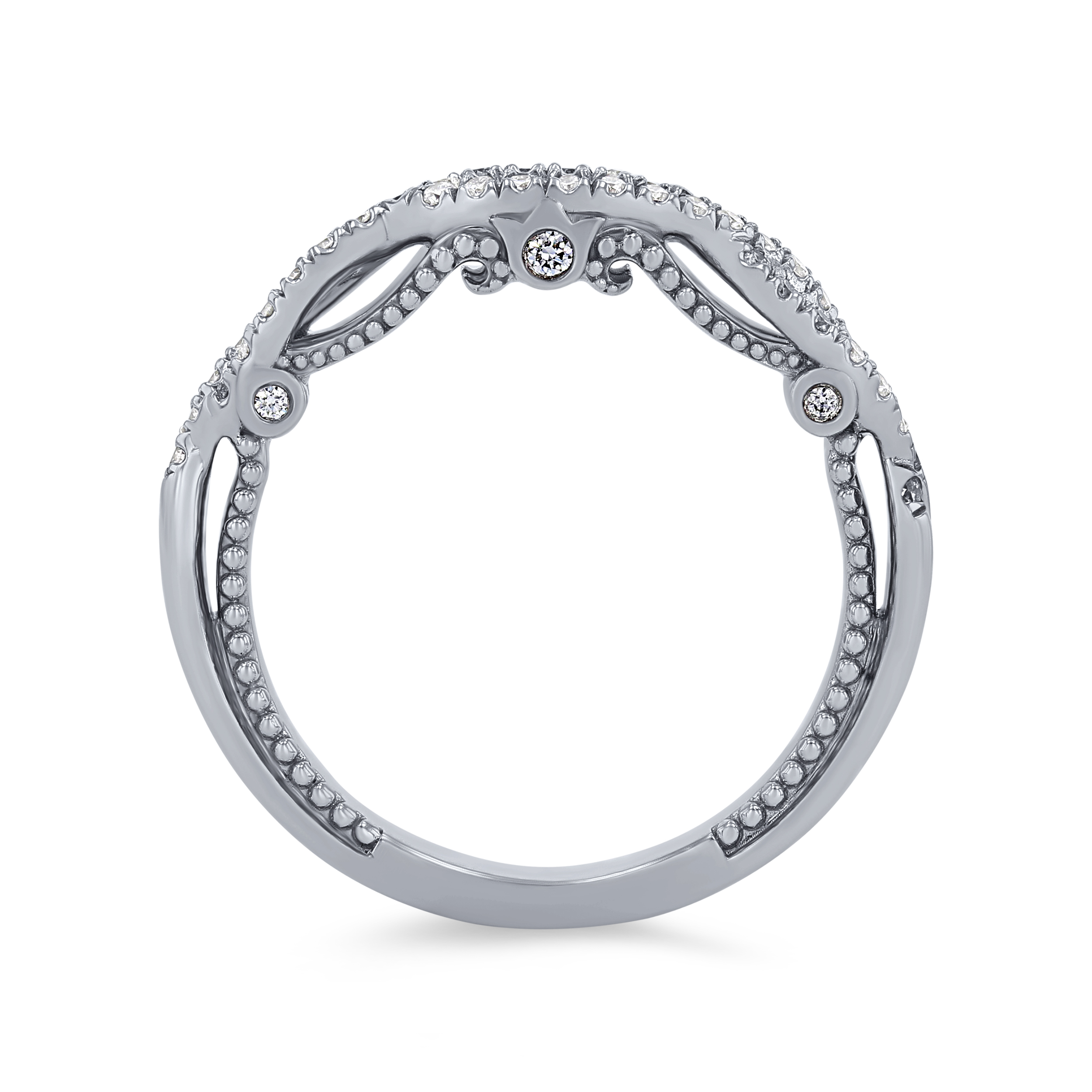 Product Description This romantic Verragio Insignia Collection twisted band features intricate detail on the profile, along with round briliant cut diamonds totaling 0.25 carats. Other Details Metal Color: Rose Gold Metal Color: Platinum Type: Ladies Wedding Band Metal Color: White Gold Diamond: Vintage Metal Color: Two Tone Wedding Band Type: Twist Gemstone Type: Diamond Disable Reason: None Total Setting Diamond Carat Weight: 0.25TW Metal Color: Yellow Gold