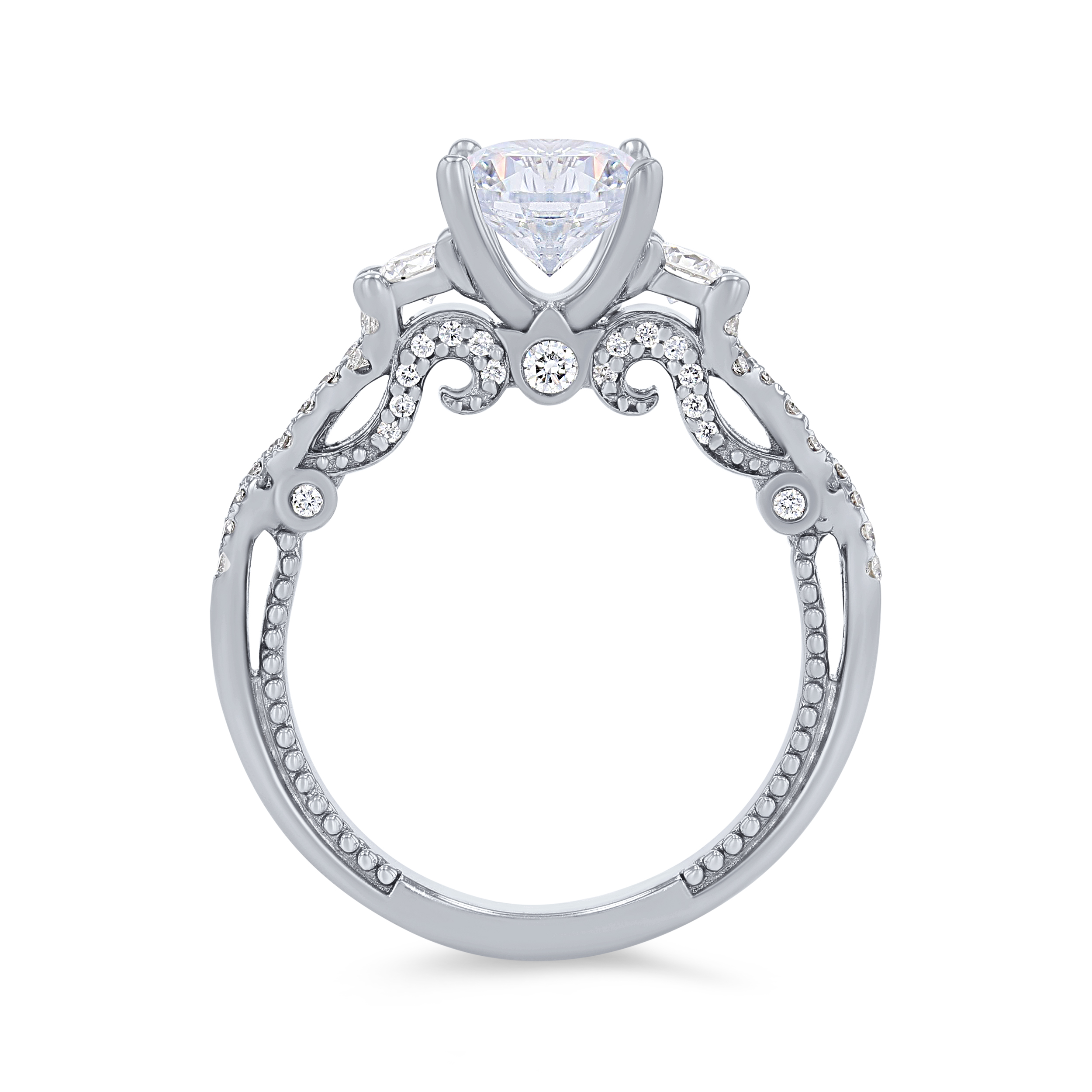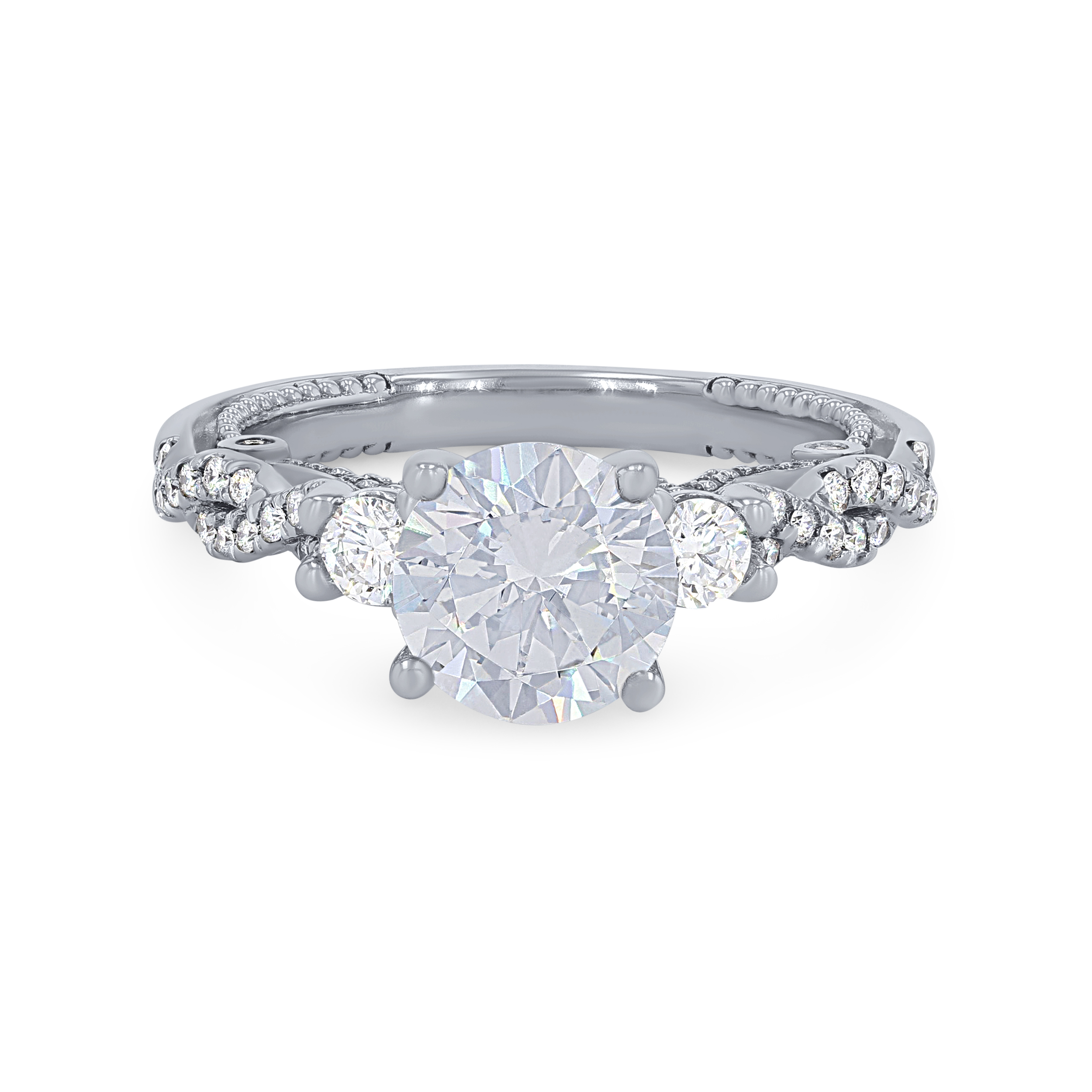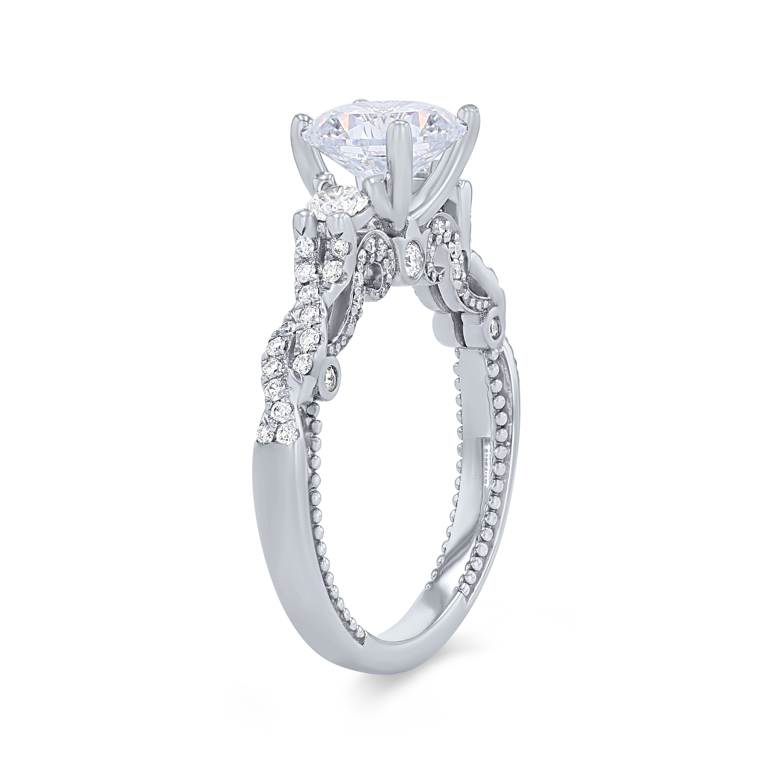 Product Description This beautiful three-stone twist setting from the Verragio Insignia Collection features 0.50 carats of round brilliant diamonds. Other Details Mounting Type: Three Stone Metal Color: Yellow Gold Disable Reason: None Total Setting Diamond Carat Weight: 0.5TW Gemstone Type: Diamond Type: Setting Metal Color: Rose Gold Metal Color: White Gold Metal Color: Two Tone Metal Color: Platinum Style: Vintage