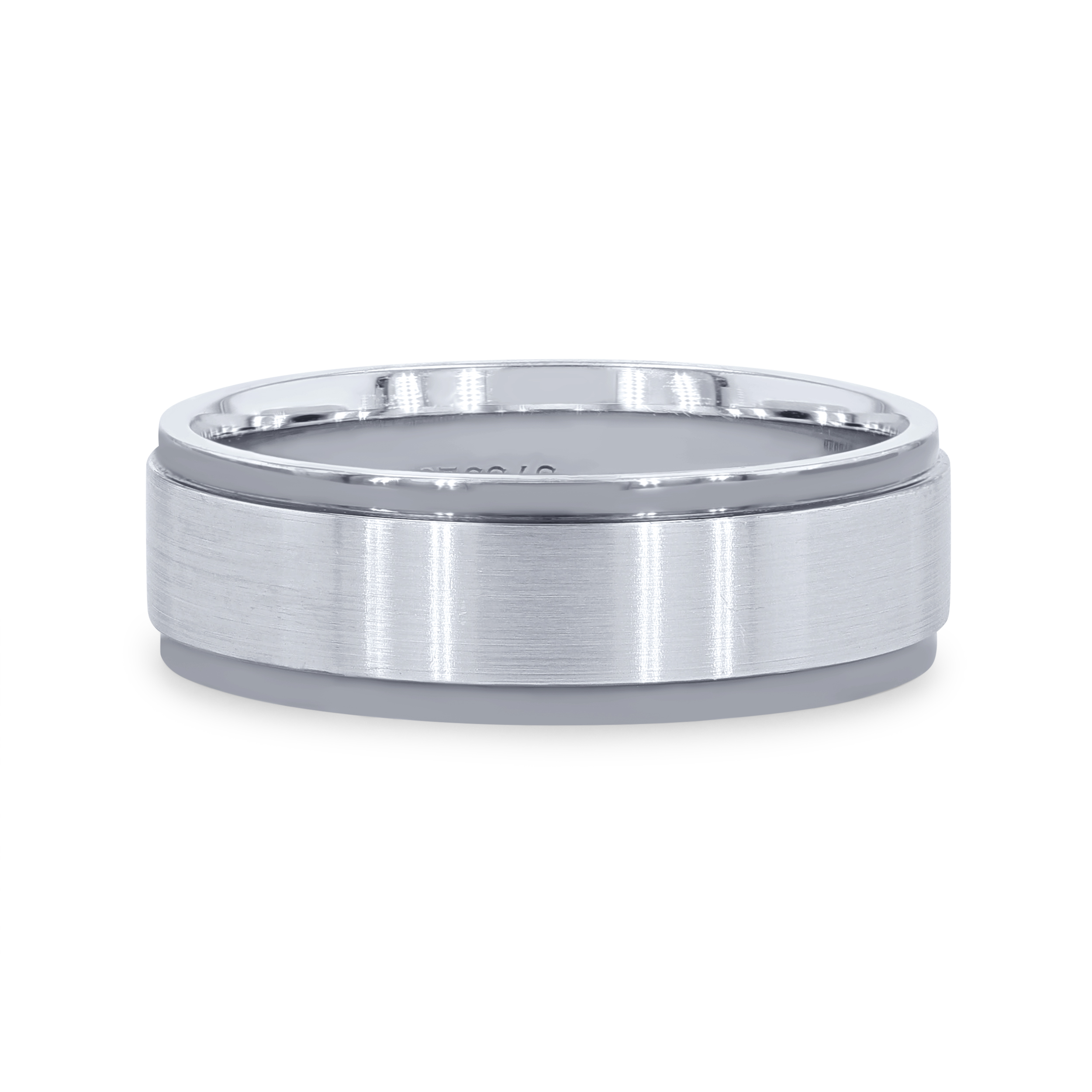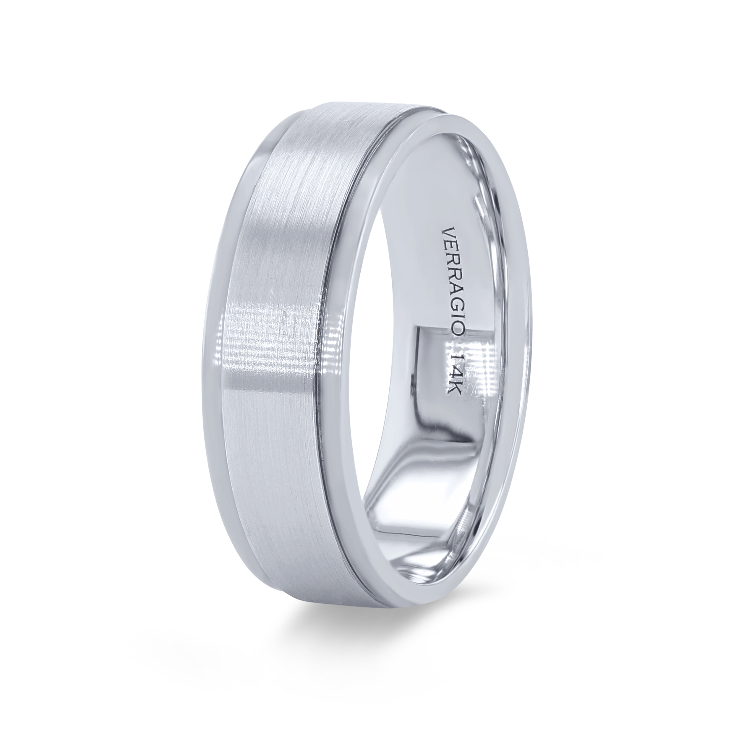 Product Description Timeless and classic, this wedding band by Verragio features a matte finish center with contrasting high-polished edges. It measures 6.5 millimeters wide. Other Details Gents Wedding Band Style: Classic Metal Color: Platinum Metal Color: Yellow Gold Metal Color: White Gold Disable Reason: None Men Wedding Band Type: Men's Plain Bands Metal Color: Rose Gold Type: Gents Wedding Band