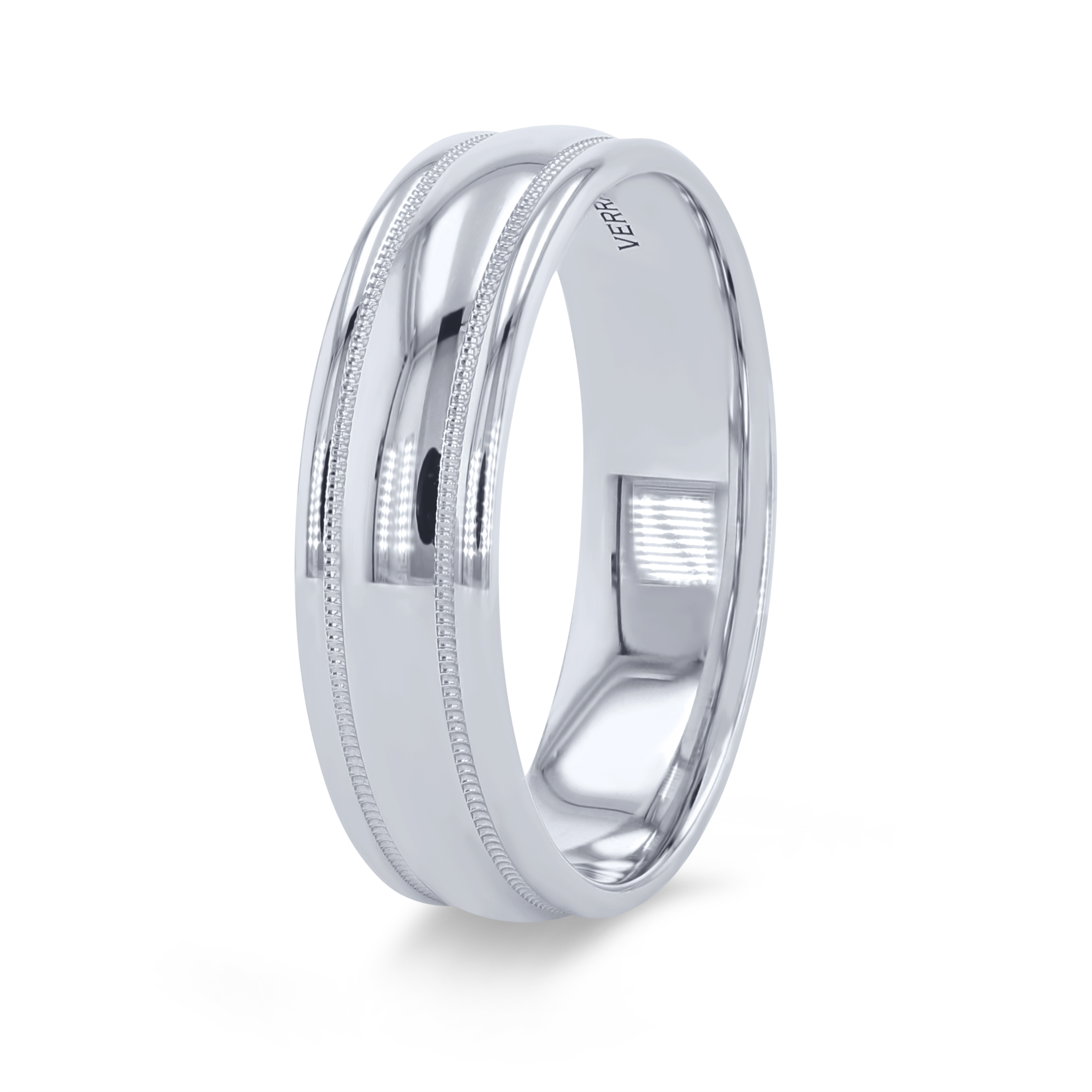 Product Description This eye-catching wedding band by Verragio features delicate milgrain lines accented with a high-polished finish. It measures six millimeters wide. Other Details Metal Color: Platinum Metal Color: White Gold Disable Reason: None Gents Wedding Band Style: Contemporary Metal Color: Rose Gold Type: Gents Wedding Band Metal Color: Yellow Gold Men Wedding Band Type: Milgrain