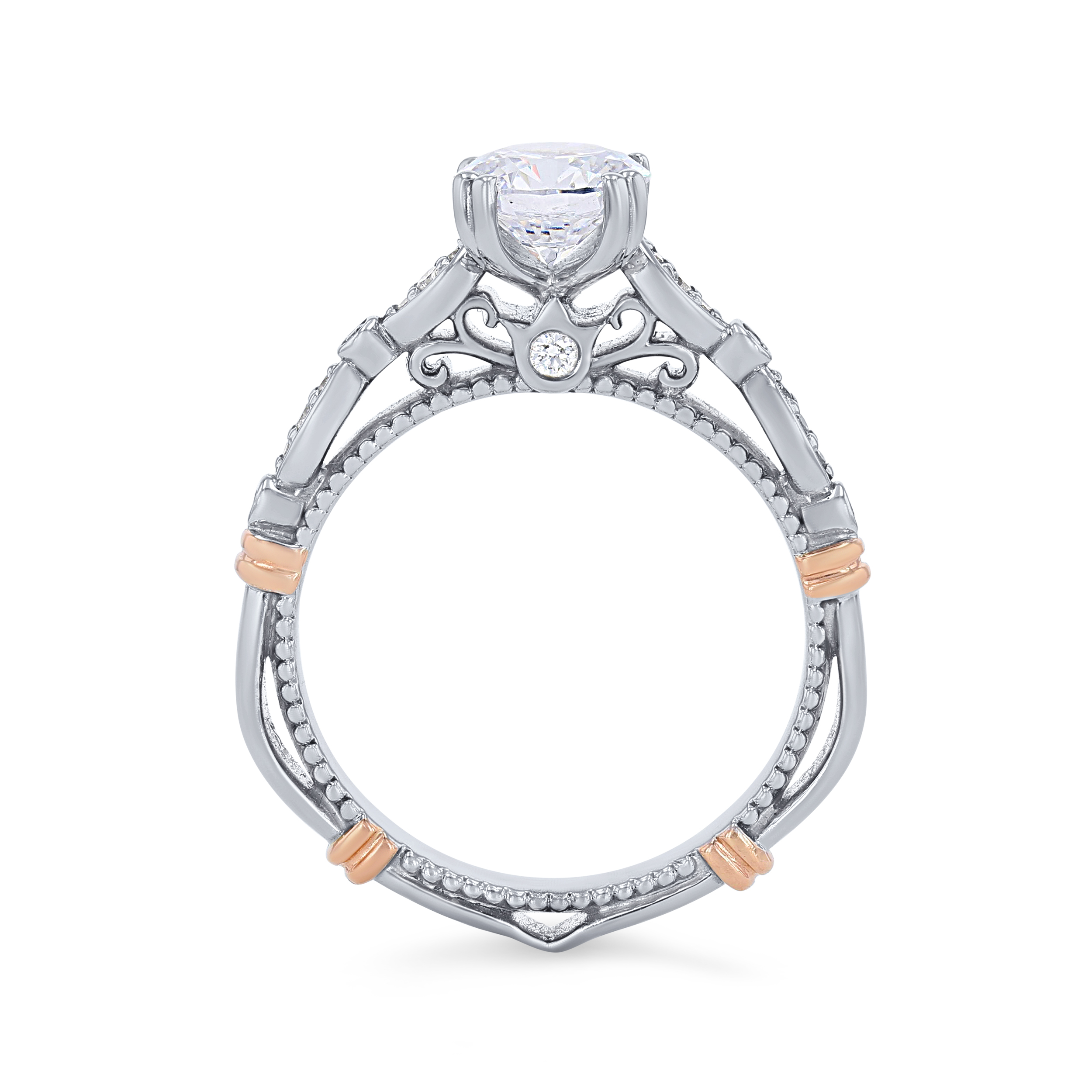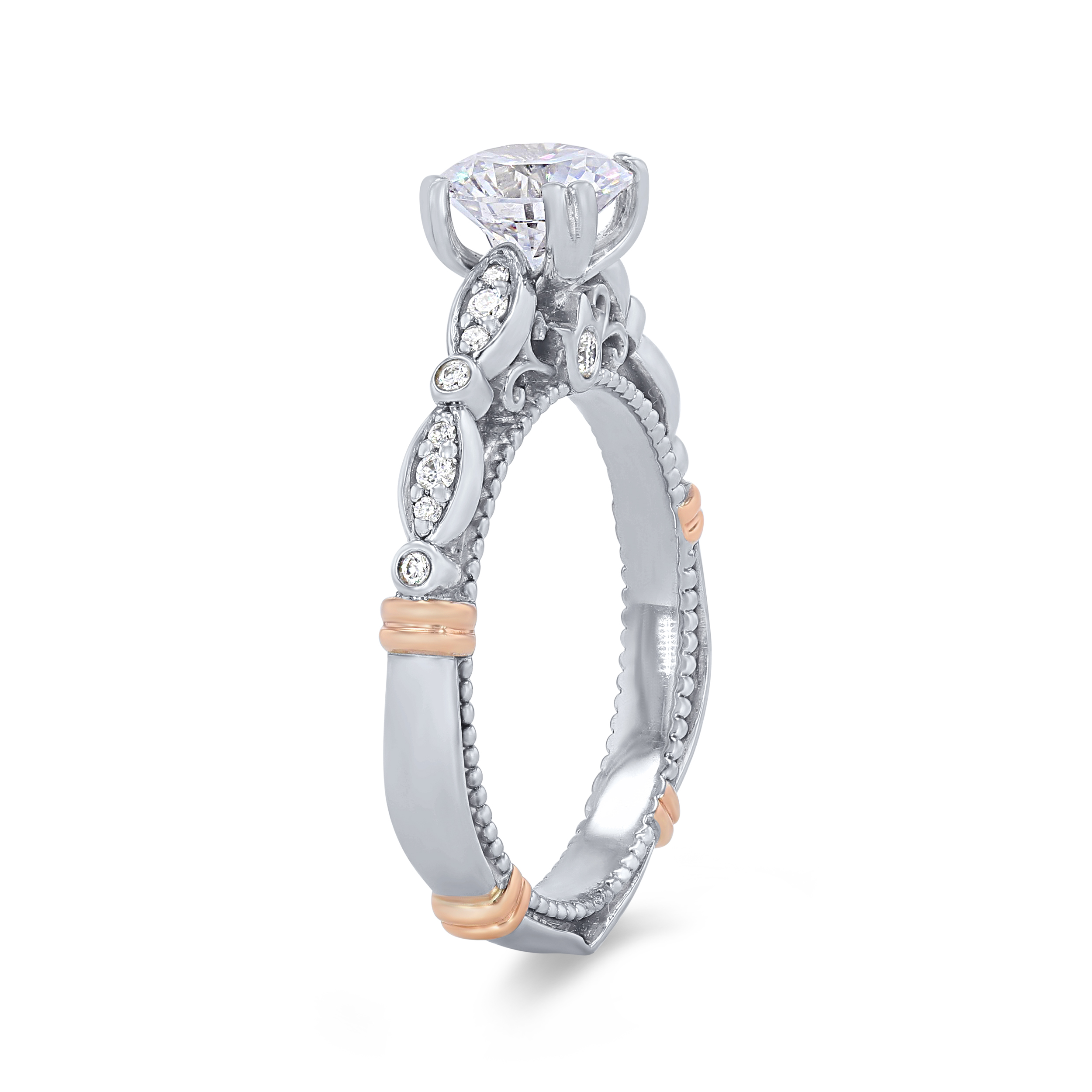 Product Description This dainty Verragio Parisian Collection engagement ring features milgrain and scrolling detail with a wrap design. The round brilliant cut diamonds total 0.15 carats. Other Details Metal Color: Yellow Gold Style: Vintage Metal Color: Rose Gold Gemstone Type: Diamond Total Setting Diamond Carat Weight: 0.15TW Mounting Type: Diamond Accented Metal Color: Two Tone Metal Color: Platinum Type: Setting Metal Color: White Gold Disable Reason: None