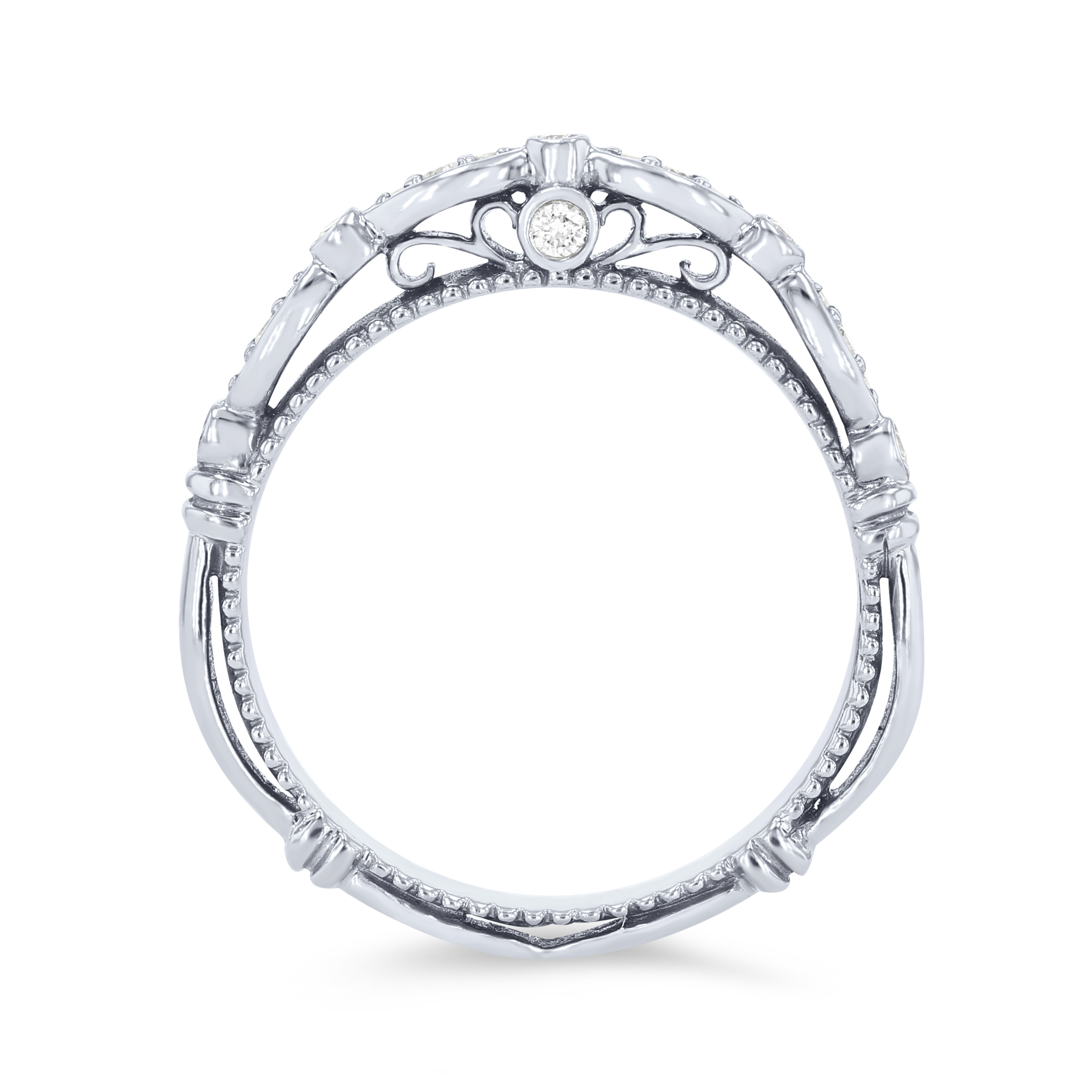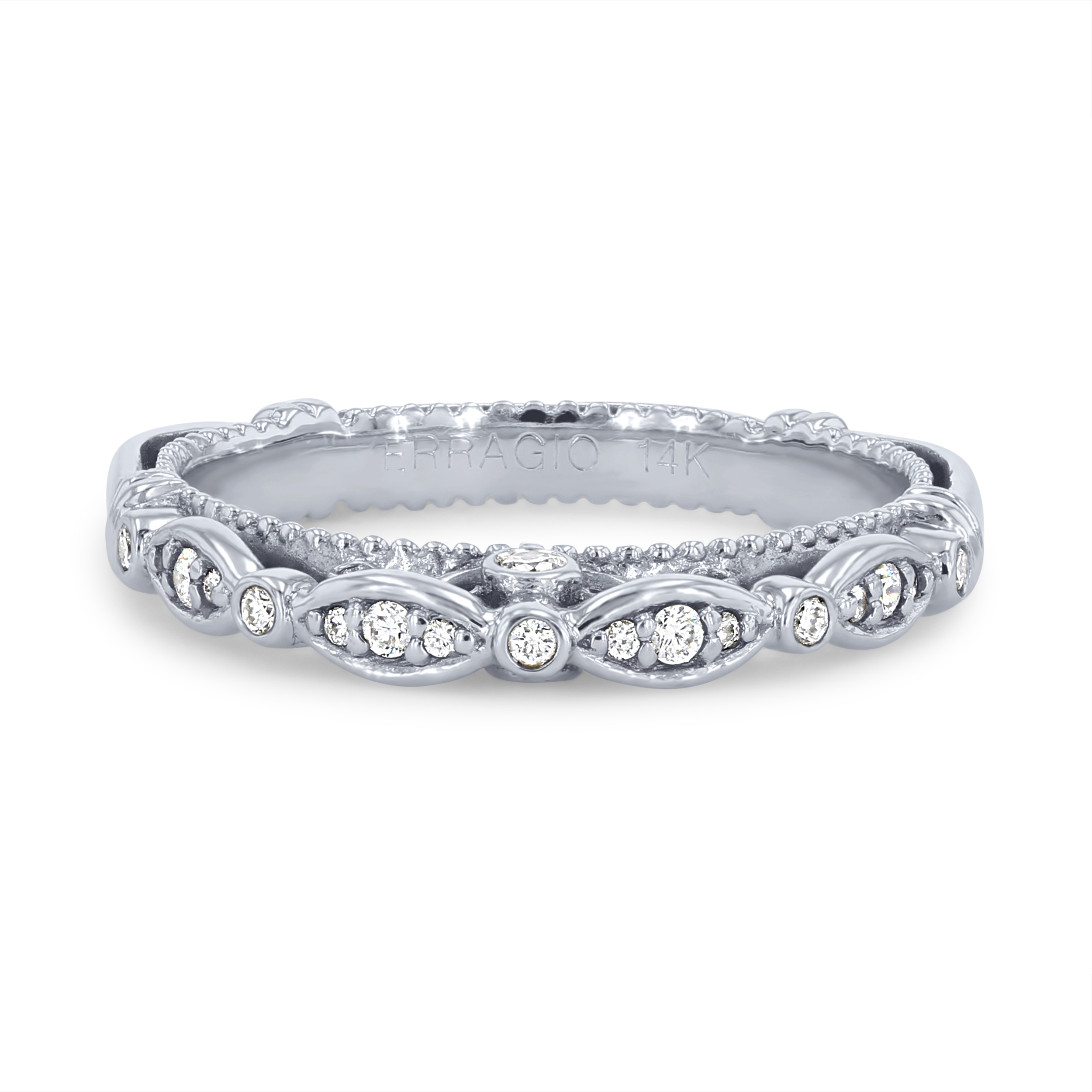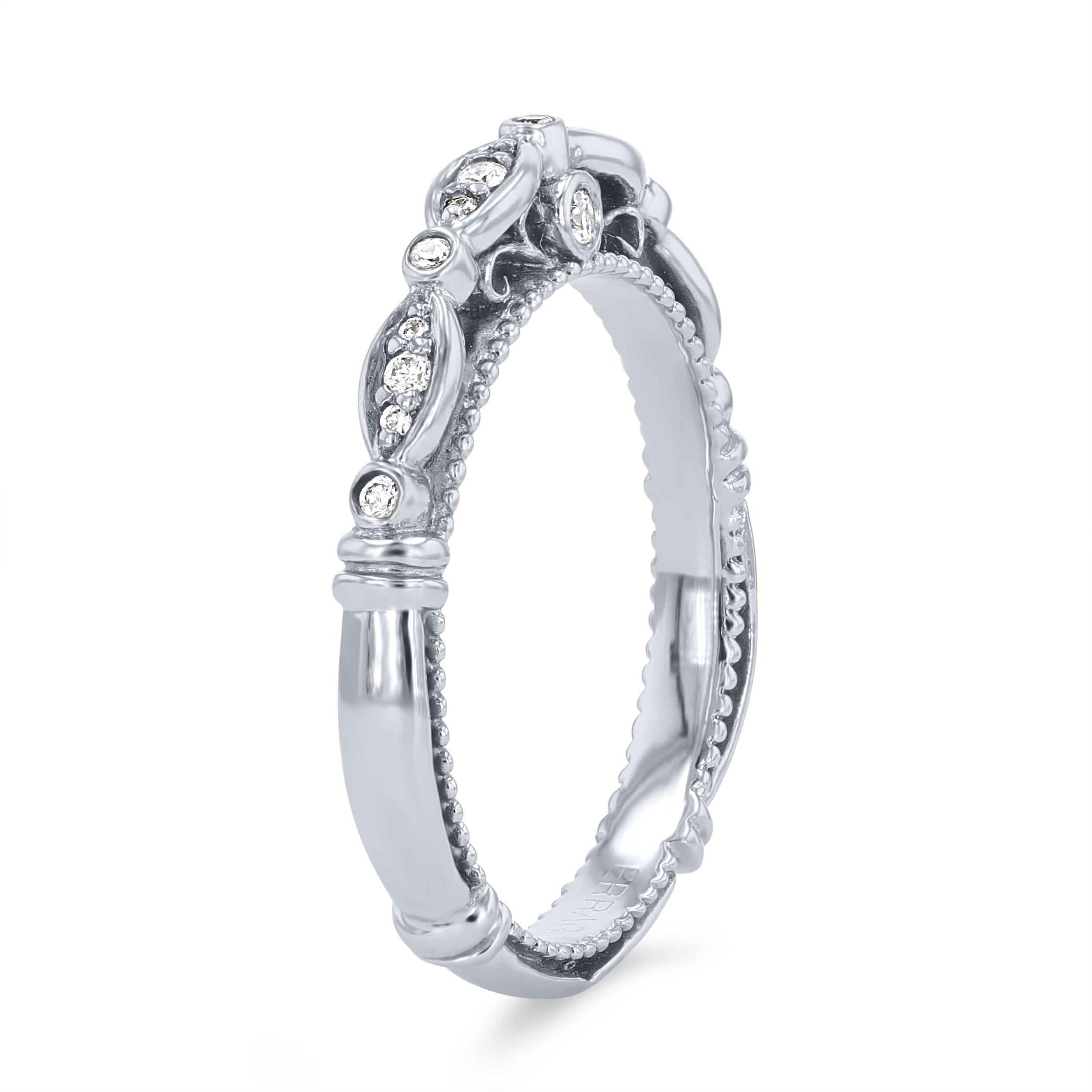 Product Description Detailed beautifully with vintage touches, this Verragio Parisian Collection wedding band features round briliant cut diamonds totaling 0.15 carats. Other Details Metal Color: Platinum Metal Color: White Gold Metal Color: Rose Gold Total Setting Diamond Carat Weight: 0.15TW Gemstone Type: Diamond Metal Color: Two Tone Type: Ladies Wedding Band Metal Color: Yellow Gold Disable Reason: None Wedding Band Type: Vintage