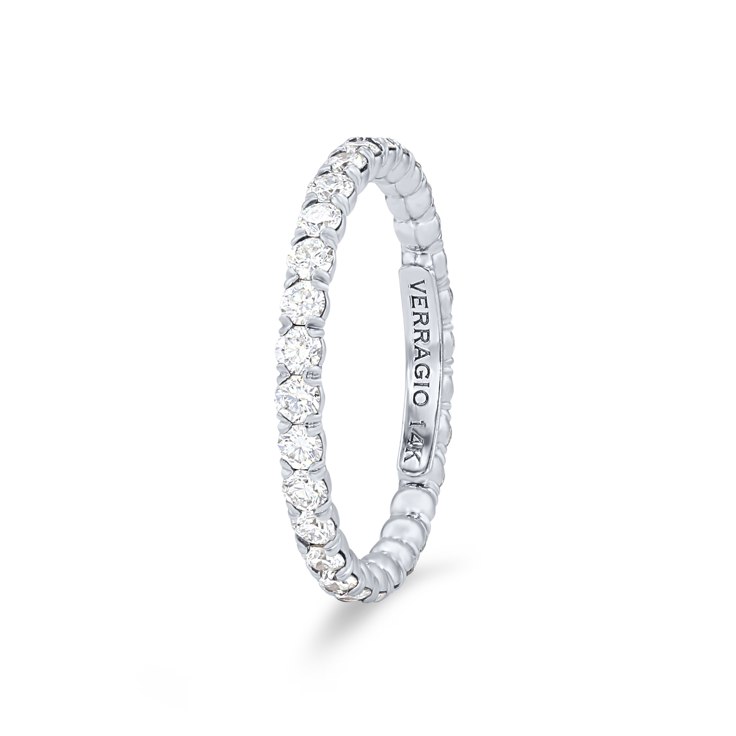 Product Description A gorgeous classic that pairs with any set, this eternity band by Verragio features round brilliant cut diamonds totaling 0.90 carats. Other Details Metal Color: Platinum Gemstone Type: Diamond Diamond: Eternity Metal Color: White Gold Style: Classic Metal Color: Yellow Gold Wedding Band Type: Prong Set Total Setting Diamond Carat Weight: 0.9TW Type: Ladies Wedding Band Metal Color: Rose Gold Disable Reason: None