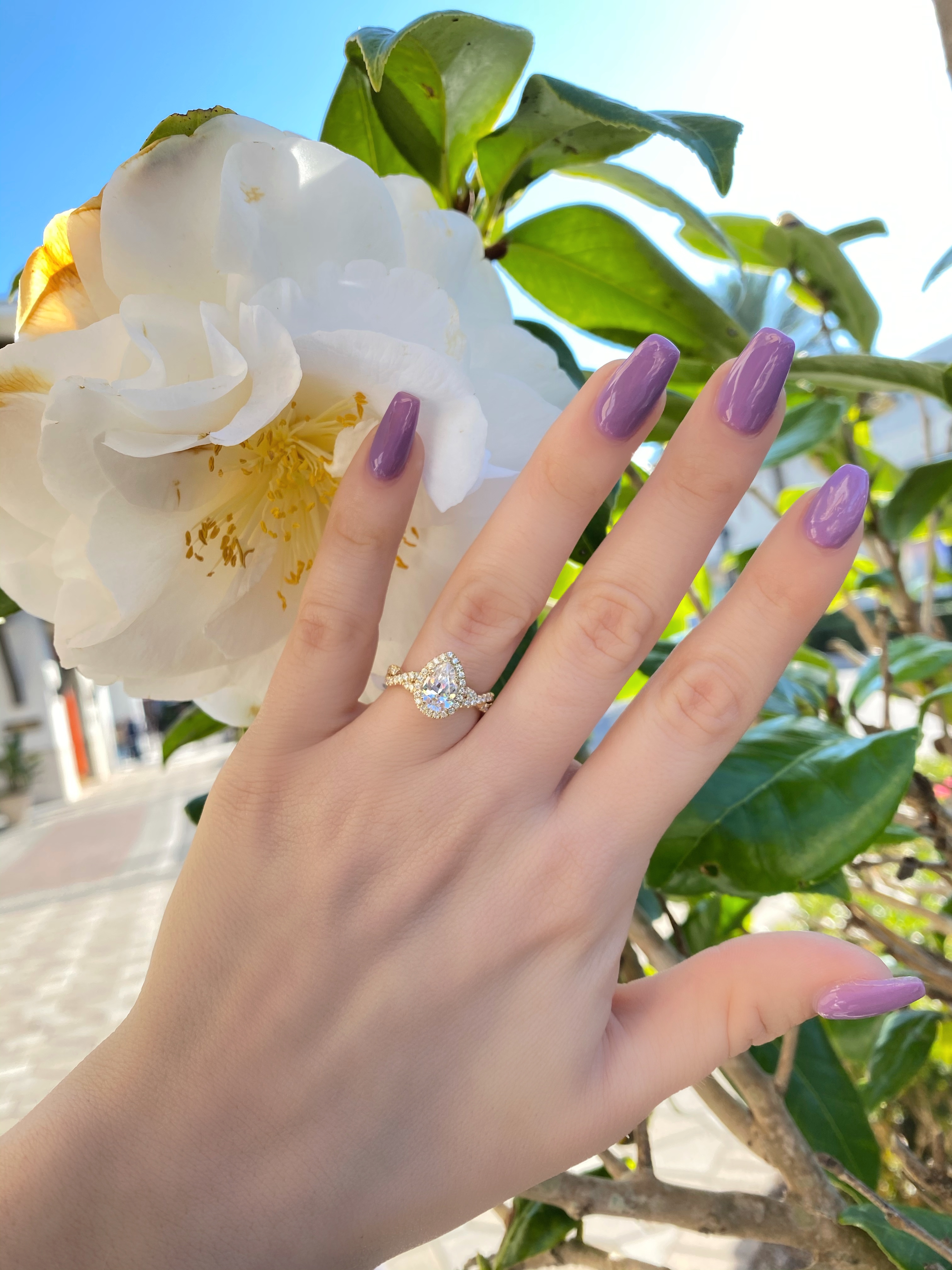 A contemporary style with beautiful details, this Verragio Renaissance Collection pear shape setting features a halo and twist design accented by 0.45 carats of round brilliant cut diamonds.