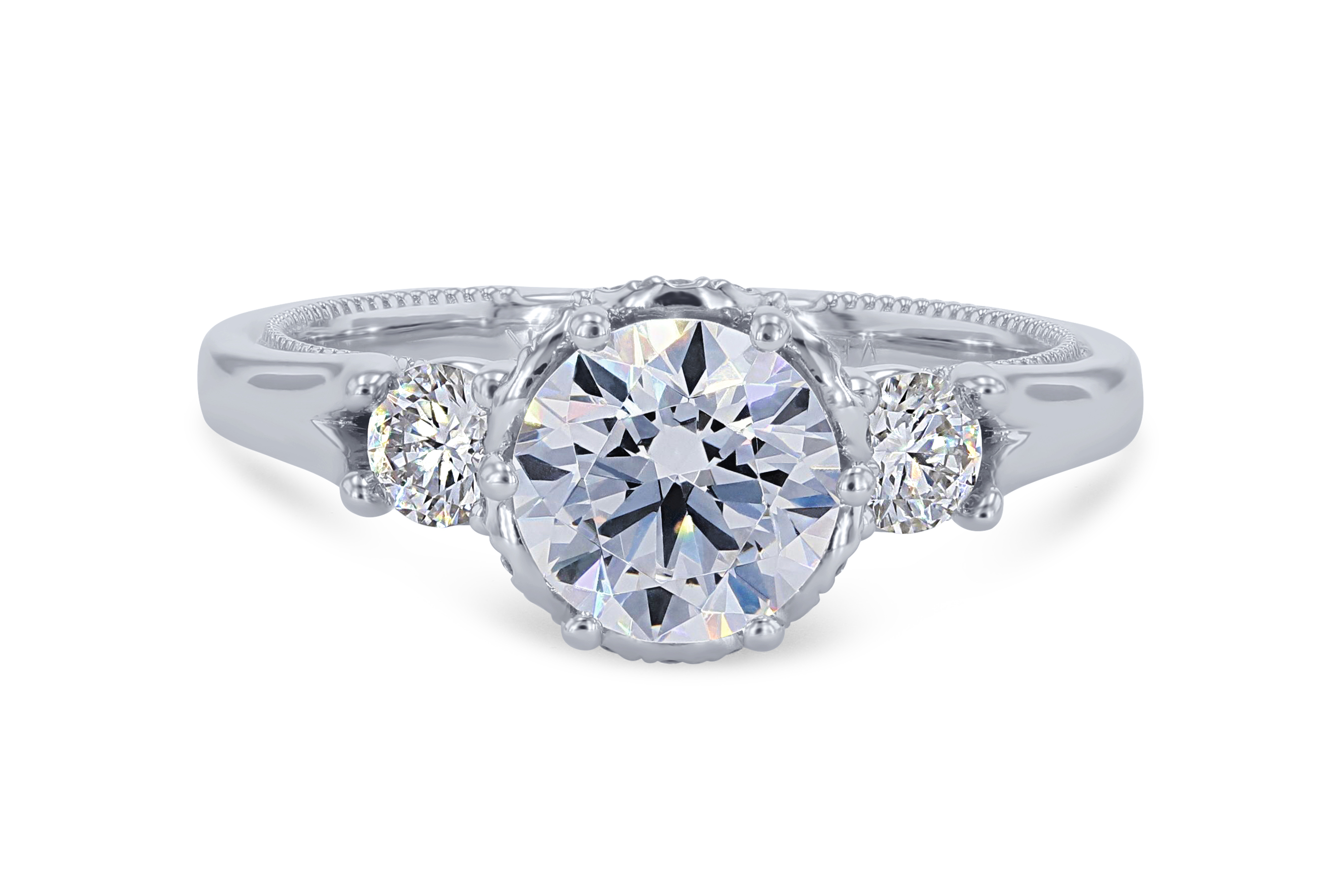 Product Description A stunning vintage-inspired look, this Verragio Renaissance Collection three-stone setting features six-prongs and round brilliant cut diamonds totaling 0.50 carats. Other Details Metal Color: White Gold Style: Vintage Metal Color: Yellow Gold Mounting Type: Three Stone Metal Color: Platinum Total Setting Diamond Carat Weight: 0.5TW Gemstone Type: Diamond Metal Color: Rose Gold Type: Setting Disable Reason: None