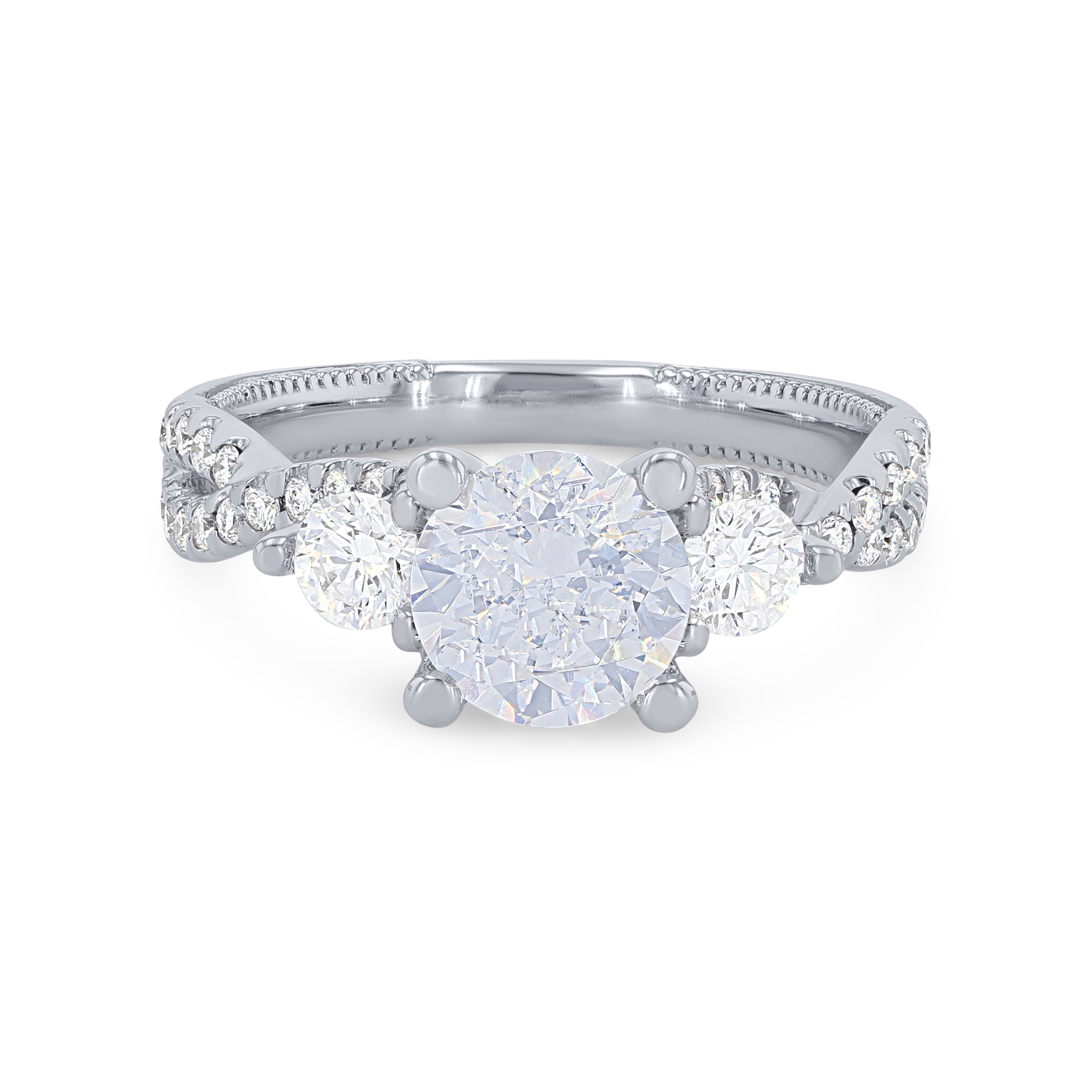 Product Description This beautiful three-stone twisted setting from the Verragio Renaissance Collection features 0.70 carats of round brilliant cut diamonds. Other Details Metal Color: White Gold Type: Setting Metal Color: Platinum Disable Reason: None Metal Color: Yellow Gold Metal Color: Rose Gold Style: Contemporary Mounting Type: Three Stone Total Setting Diamond Carat Weight: 0.7TW Gemstone Type: Diamond