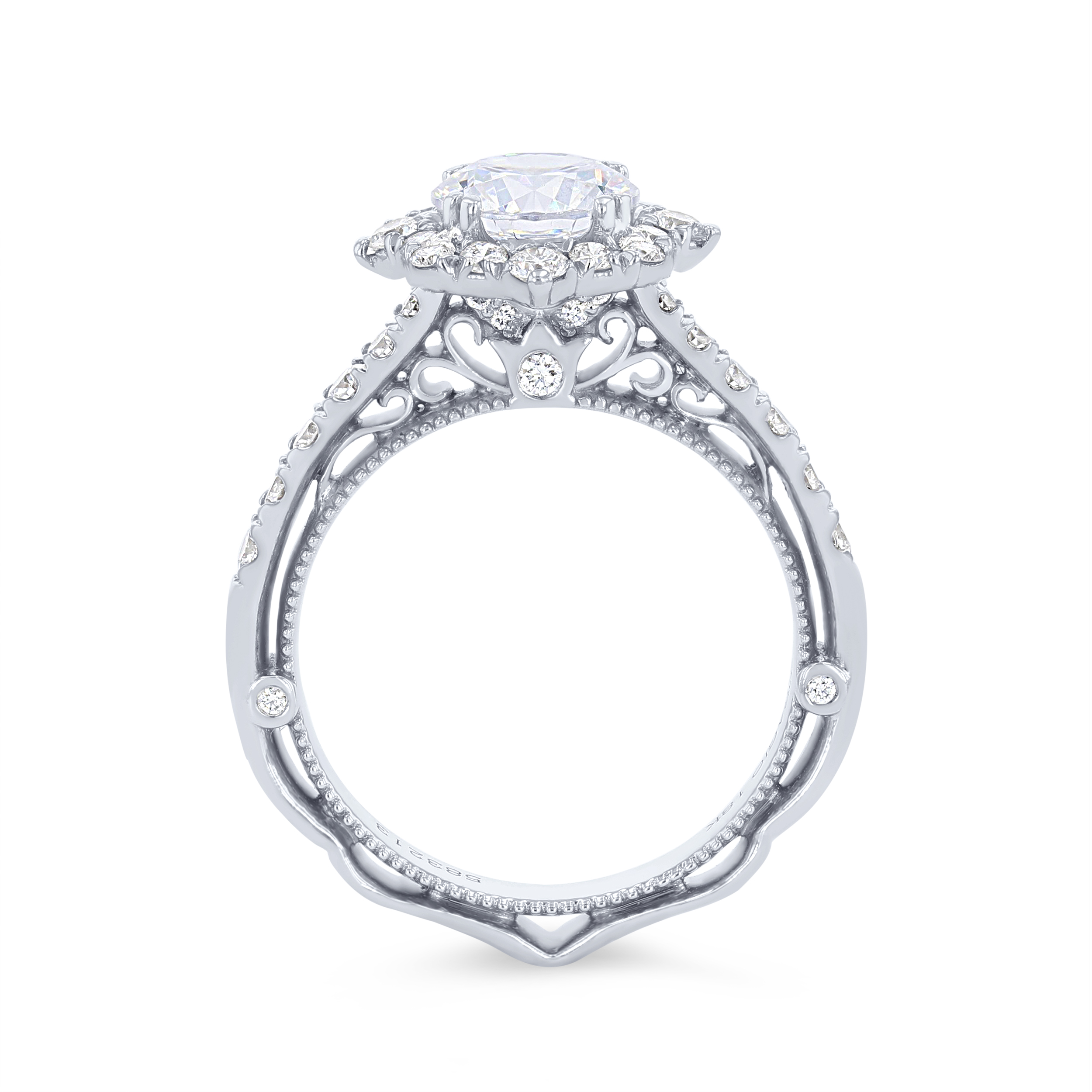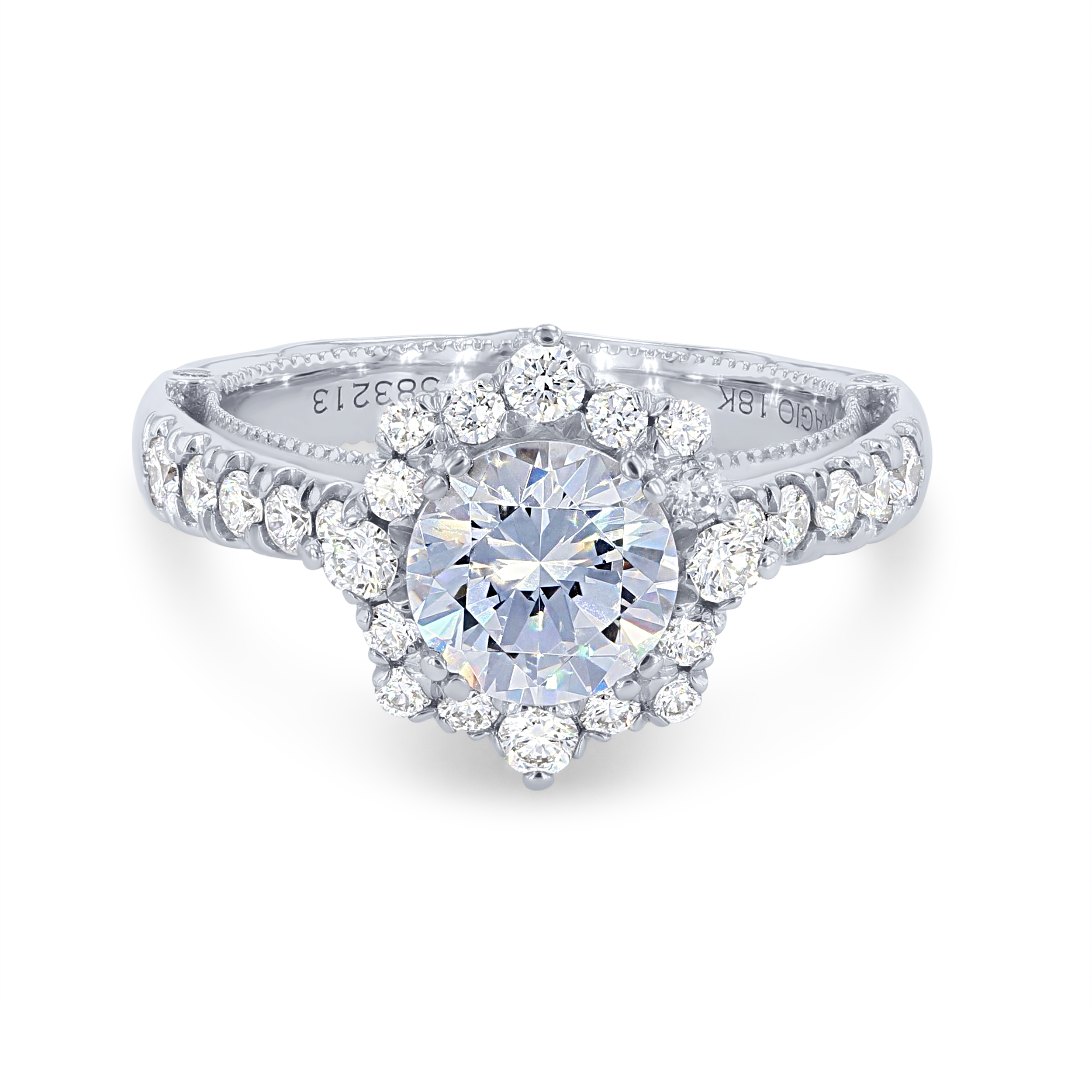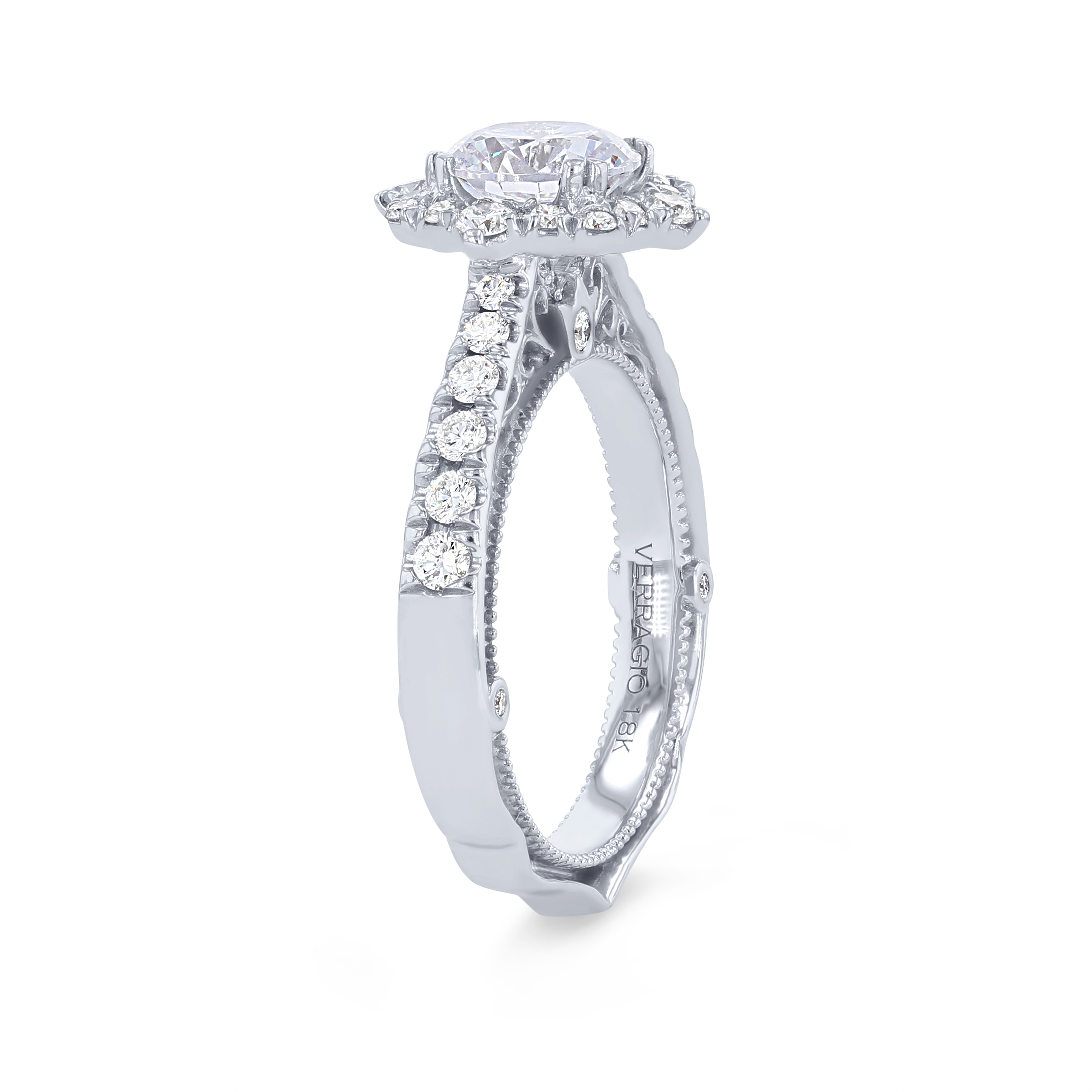 Product Description A stunning halo featuring graduated alternating round brilliant cut diamonds creates a beautiful vintage-inspired design by Verragio. The diamonds total 0.74 carats. Other Details Metal Color: Yellow Gold Mounting Type: Halo Metal Color: Rose Gold Type: Setting Metal Color: Platinum Metal Color: Two Tone Disable Reason: None Metal Color: White Gold Style: Vintage Gemstone Type: Diamond Total Setting Diamond Carat Weight: 0.74TW