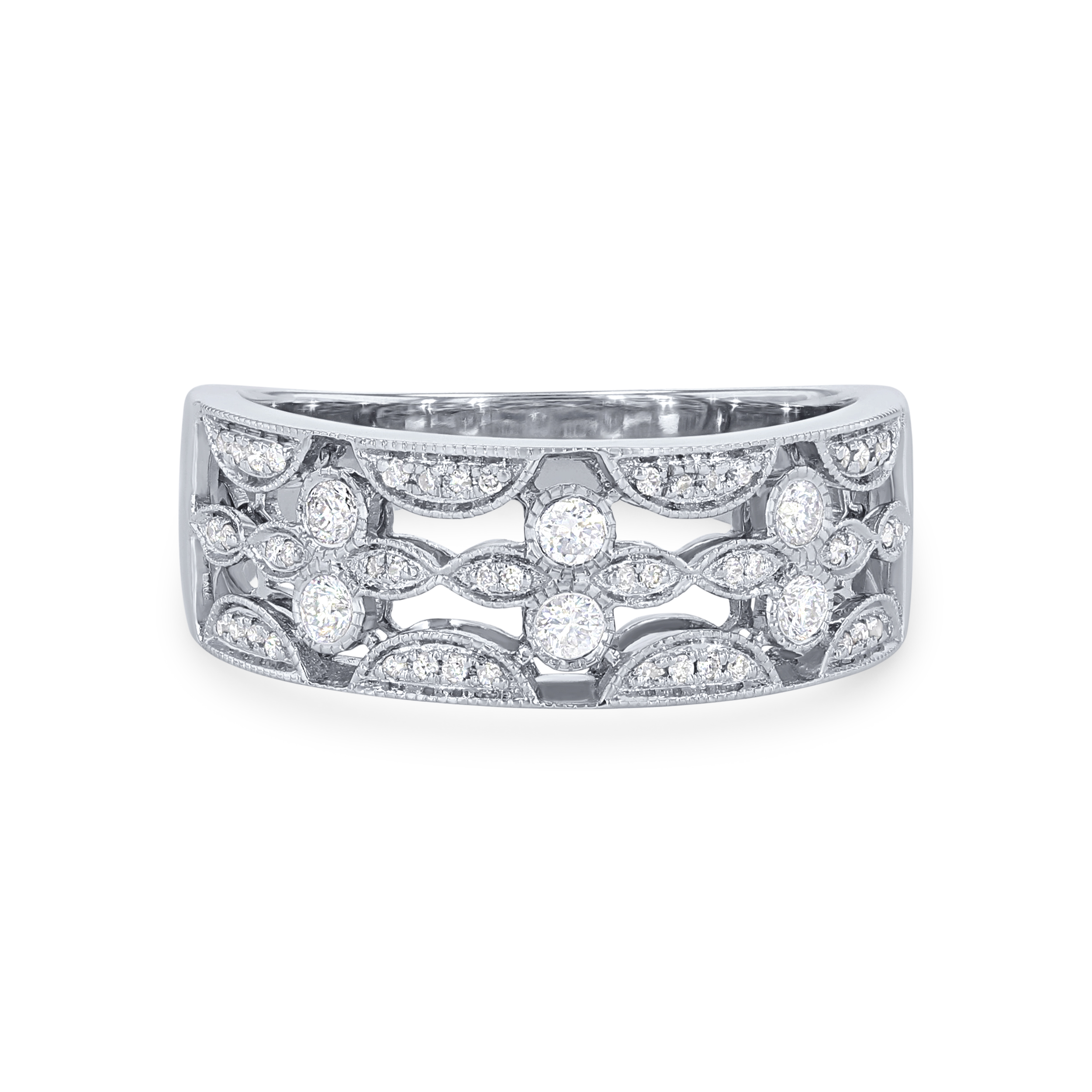 Product Description It's all in the details of this vintage band, featuring 0.25 carats of round brilliant cut diamonds. The milgrain and bezel design creates a stunning antique look. Other Details Disable Reason: None Total Setting Diamond Carat Weight: 0.25TW Type: Ring Metal Color: Rose Gold Gemstone Type: Diamond Style: Vintage Metal Color: Yellow Gold Ring Type: Fashion Metal Color: White Gold
