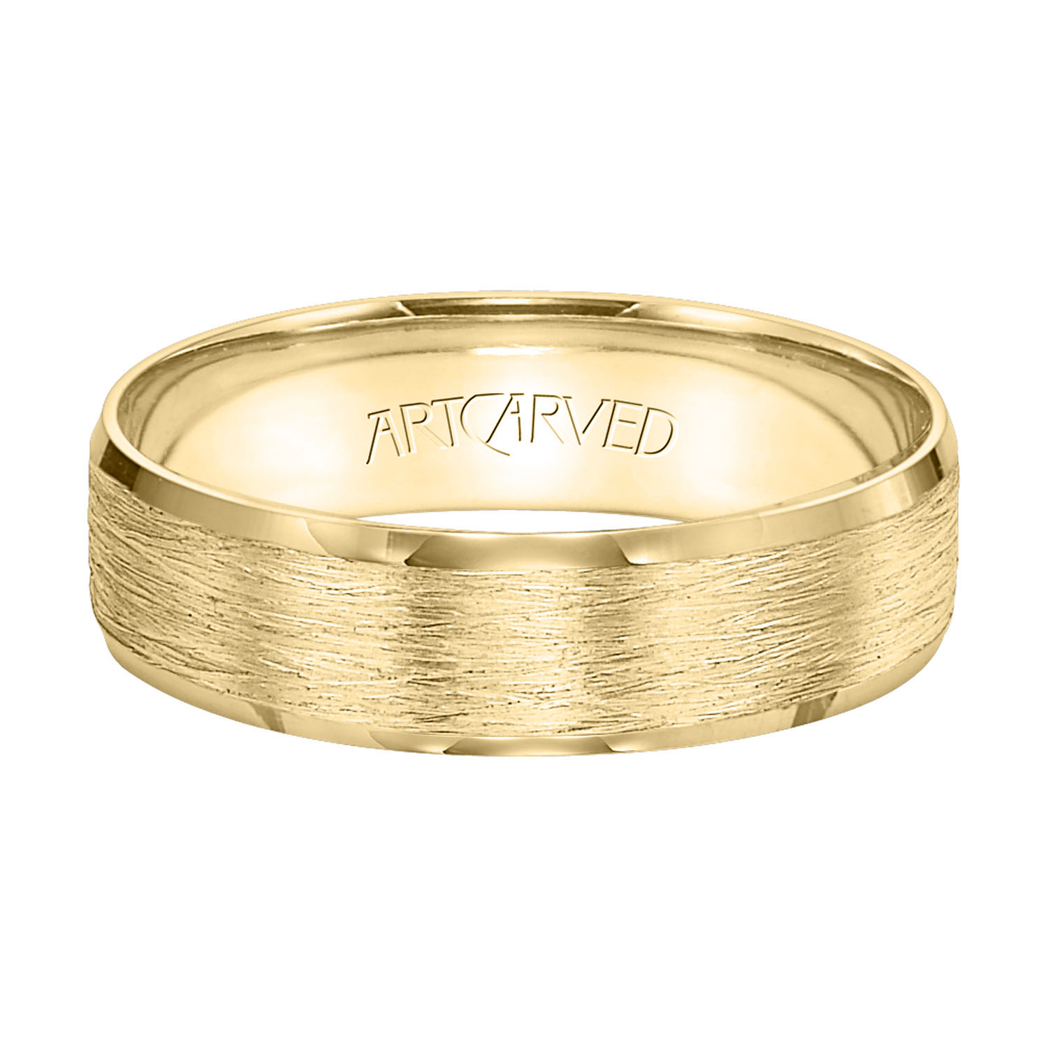 Product Description A trend-worthy modern design, this wedding band features a matte wire finish with high polished bevel edges, measuring six millimeters wide. Other Details Finish: Matte Gents Wedding Band Style: Textured Type: Gents Wedding Band Style: Contemporary