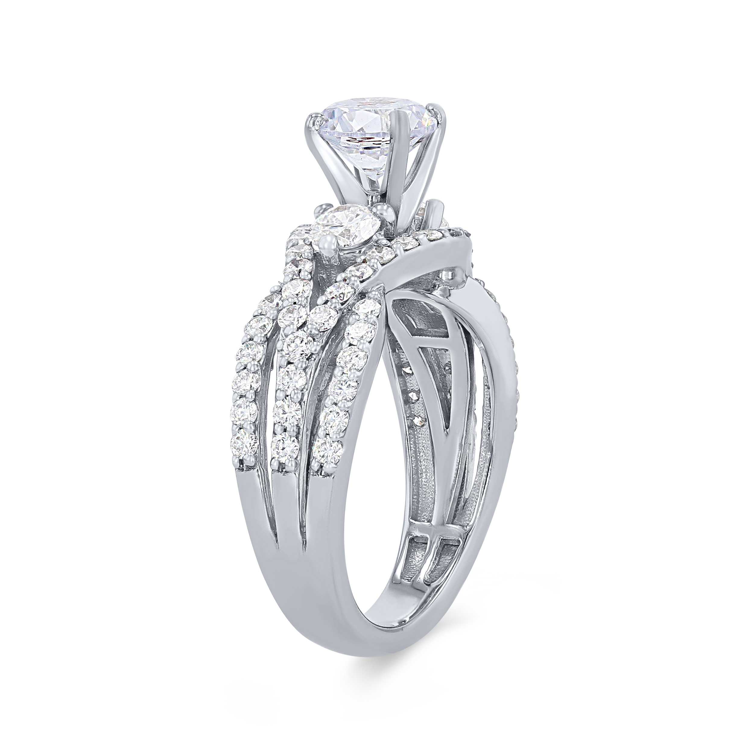 A beautiful contemporary design full of sparkle, this twist engagement setting features 1.38 carats of round brilliant cut diamonds.